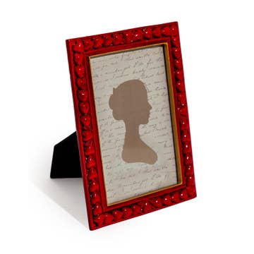 Rood glanzende fotolijst met decoratie van meerdere harten. Geschikt voor foto's van 10x15 cm (4x6 inch). Afmetingen van het product: 18,5 x 14 x 2 cm.