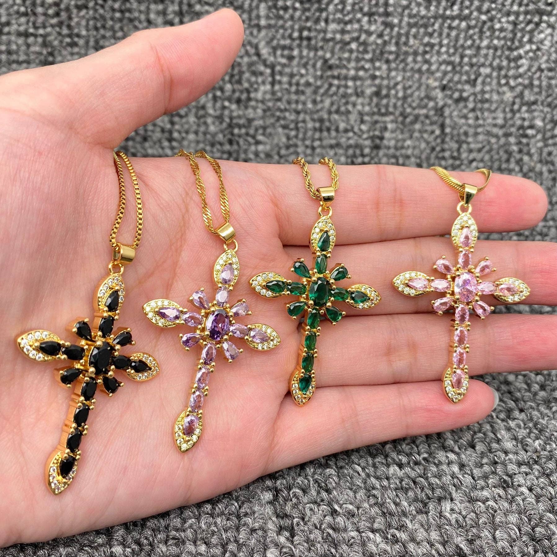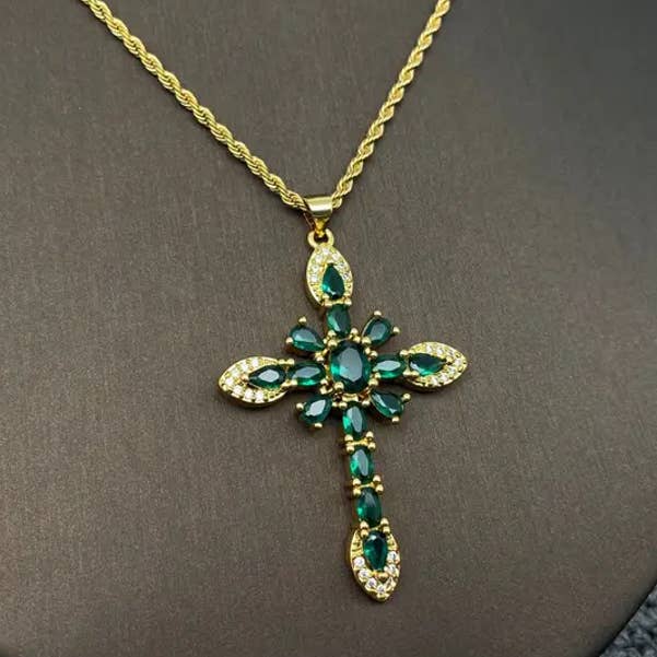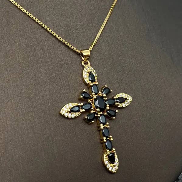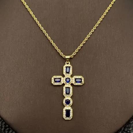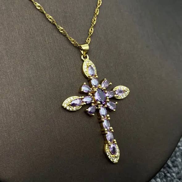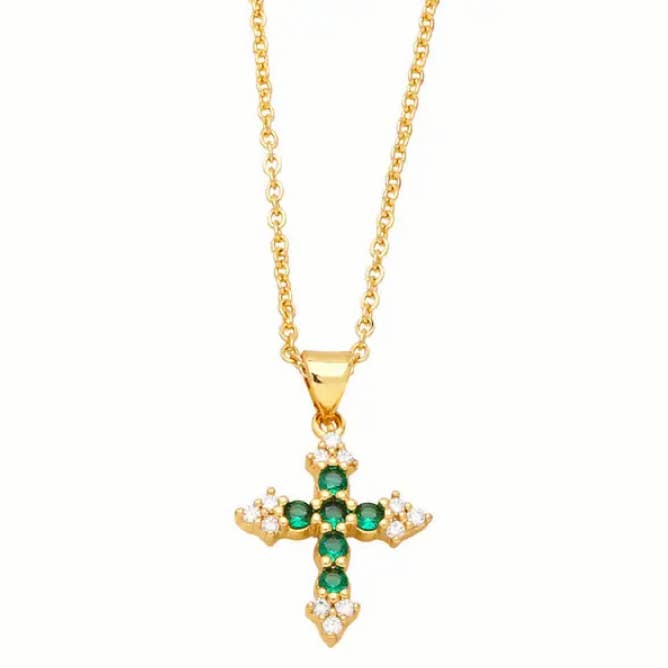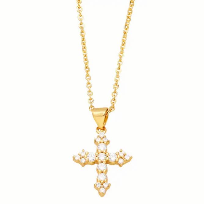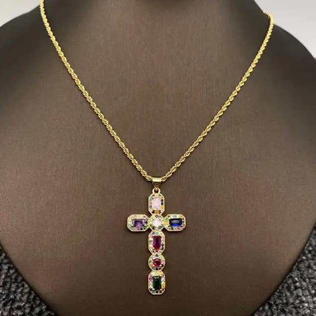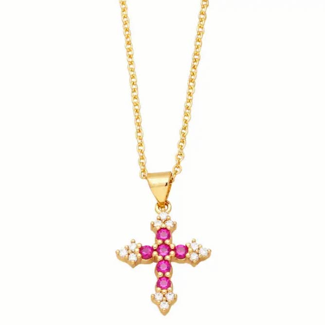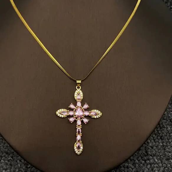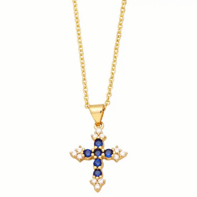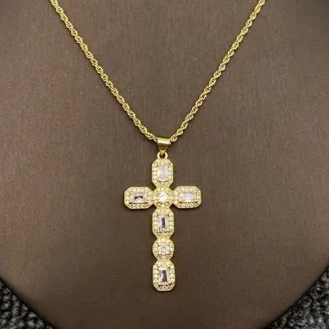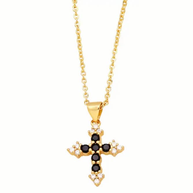 Multi-stijl ketting met gouden hanger van strass en zirkonia kruis