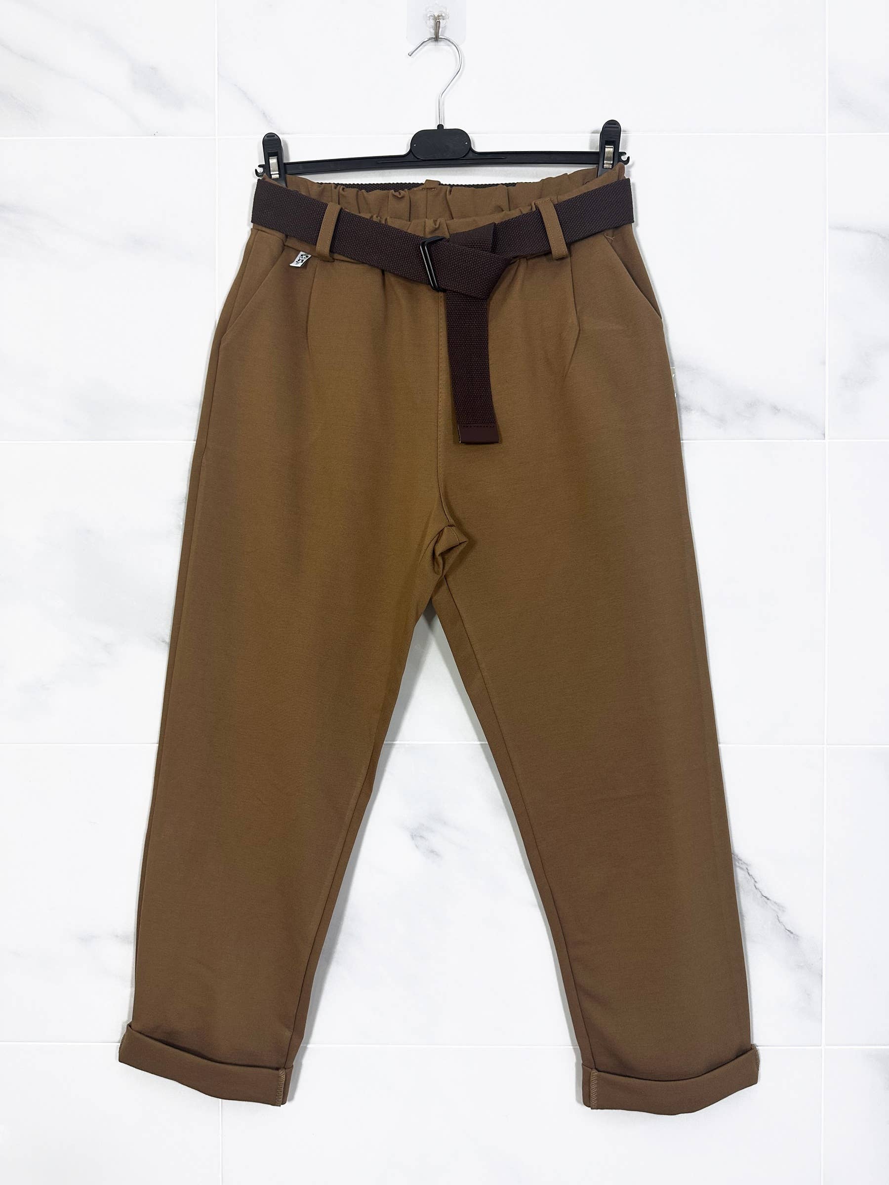 Gerimpelde joggerbroek met een "MAGIC PANTS" knoop, voorzien van zijzakken en een verstelbare tunnelkoord in de taille. De pasvorm verbetert het figuur aanzienlijk dankzij de zeer rekbare stof. De broek kan worden gladgestreken met een strijkijzer. Geschikt voor maat 36 tot 44/46 (heupomvang 100 cm, lengte 98 cm).