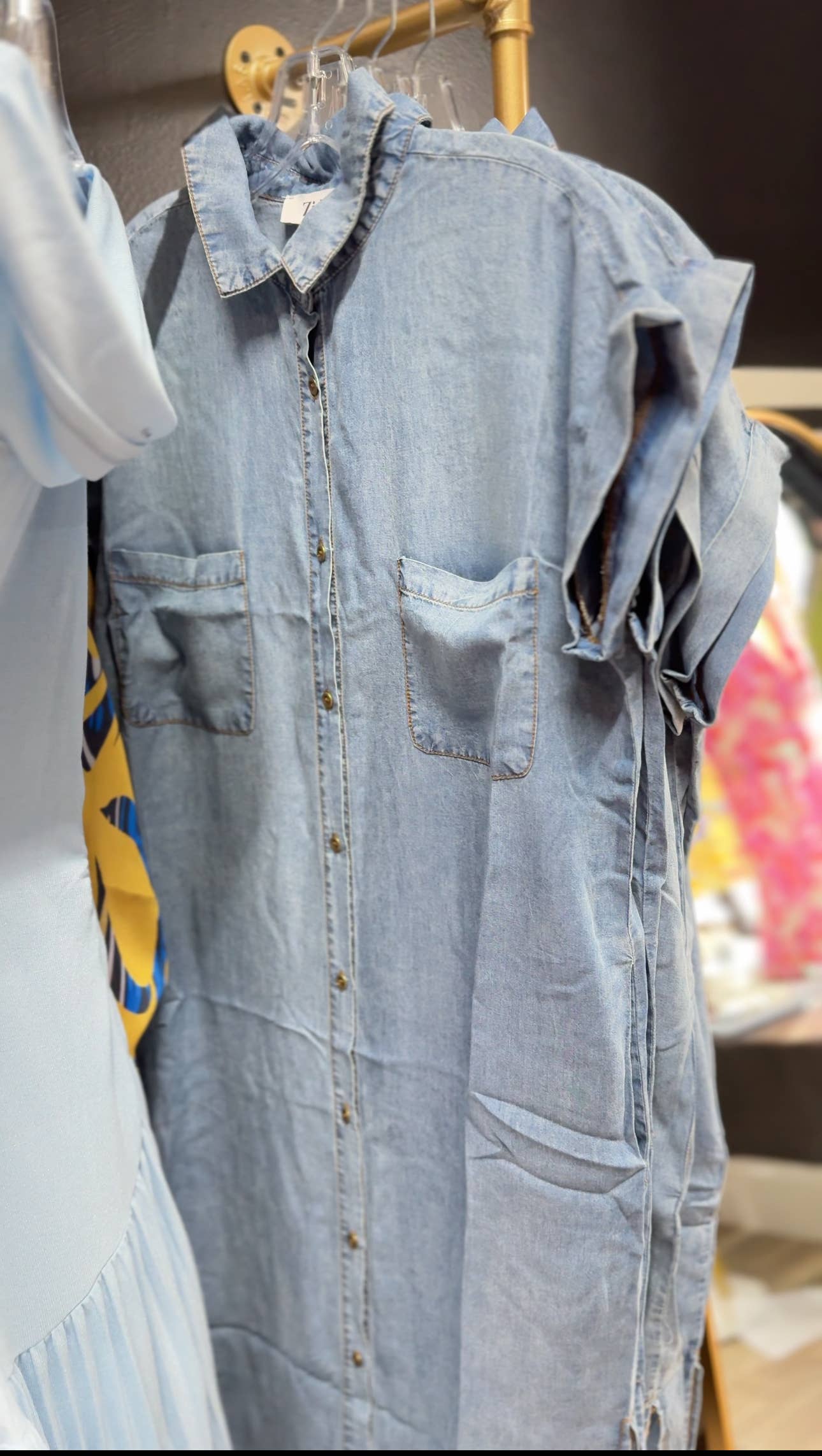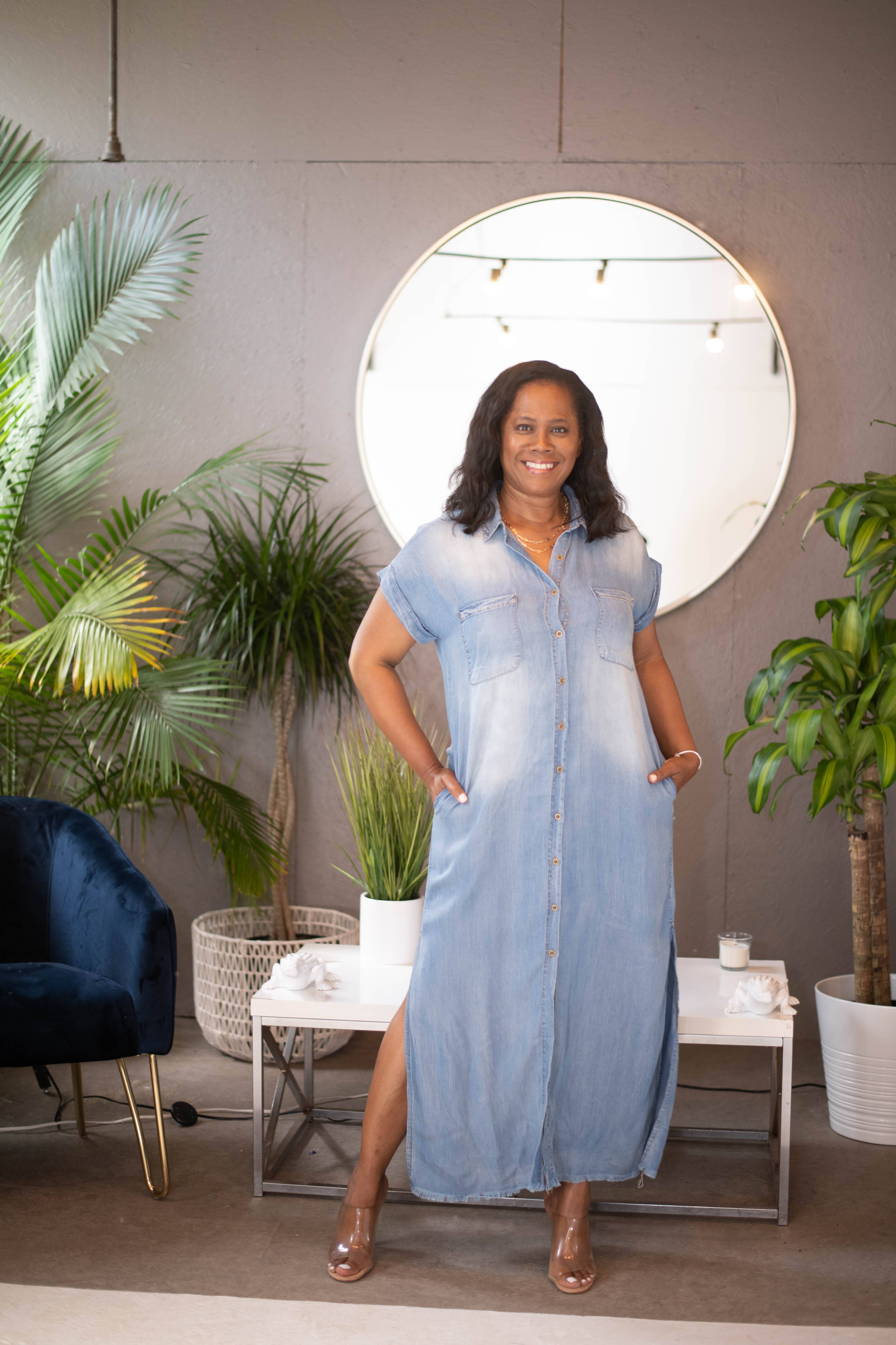Maxi spijkerjurk met korte mouwen en overhemdstijl