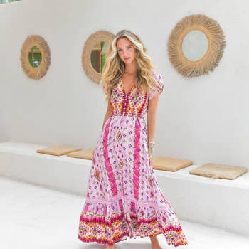 Maxijurk met bloemenprint, relaxte pasvorm en boterzachte gebreide tanktop.