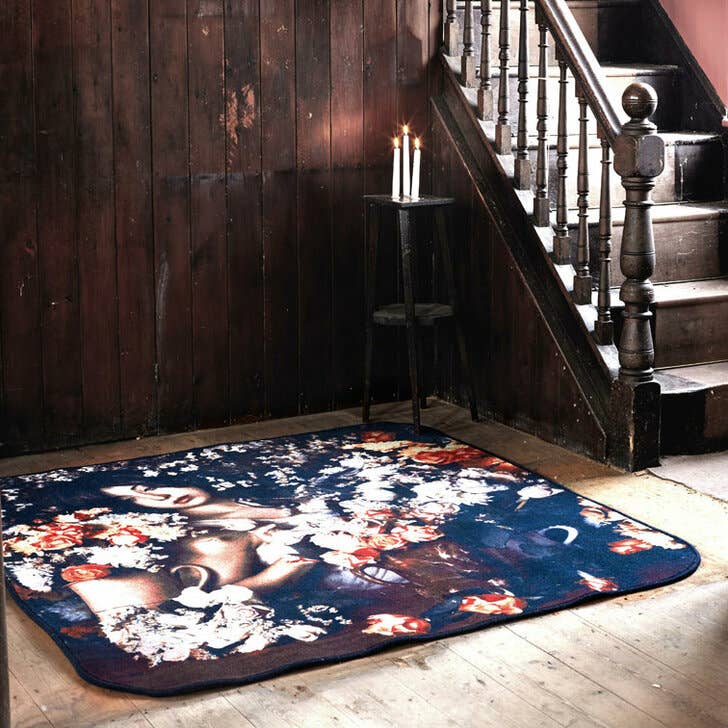 Mineheart geniet van intrigerende optische illusies en dit weelderige statement tapijt - verkrijgbaar in paarse, marine- en witte kleuren - is typisch geestig. Het bootst de vorm en textuur van koeienhuid na (maar zonder beesten te schaden), het is deels Mongools, deels zigeuner en 100% glamour. Verspreid onder de voeten of opgehangen aan een muur, straalt het eclecticisme uit. Het ontwerp wordt mogelijk gemaakt door het bloemmotief digitaal af te drukken op een speciaal rubber met stoffen rug, de hand gesneden in zijn uiteindelijke huidvorm. In tegenstelling tot echte koeienhuiden is deze hypoallergeen, wasbaar, antislip en krult hij niet op aan de randen. Een fusie tussen kunst en bruikbaarheid, dit tapijt voegt een prachtig surrealistisch tintje toe aan elk interieur.