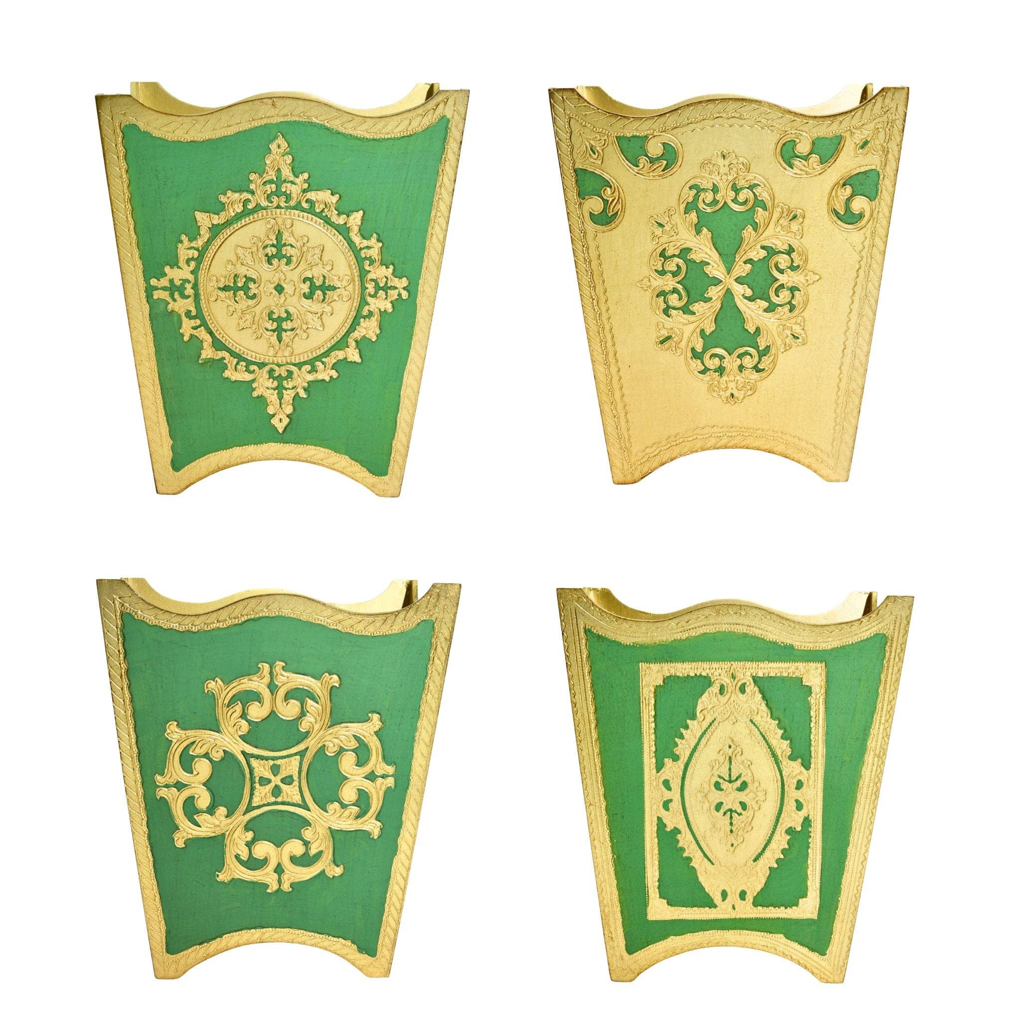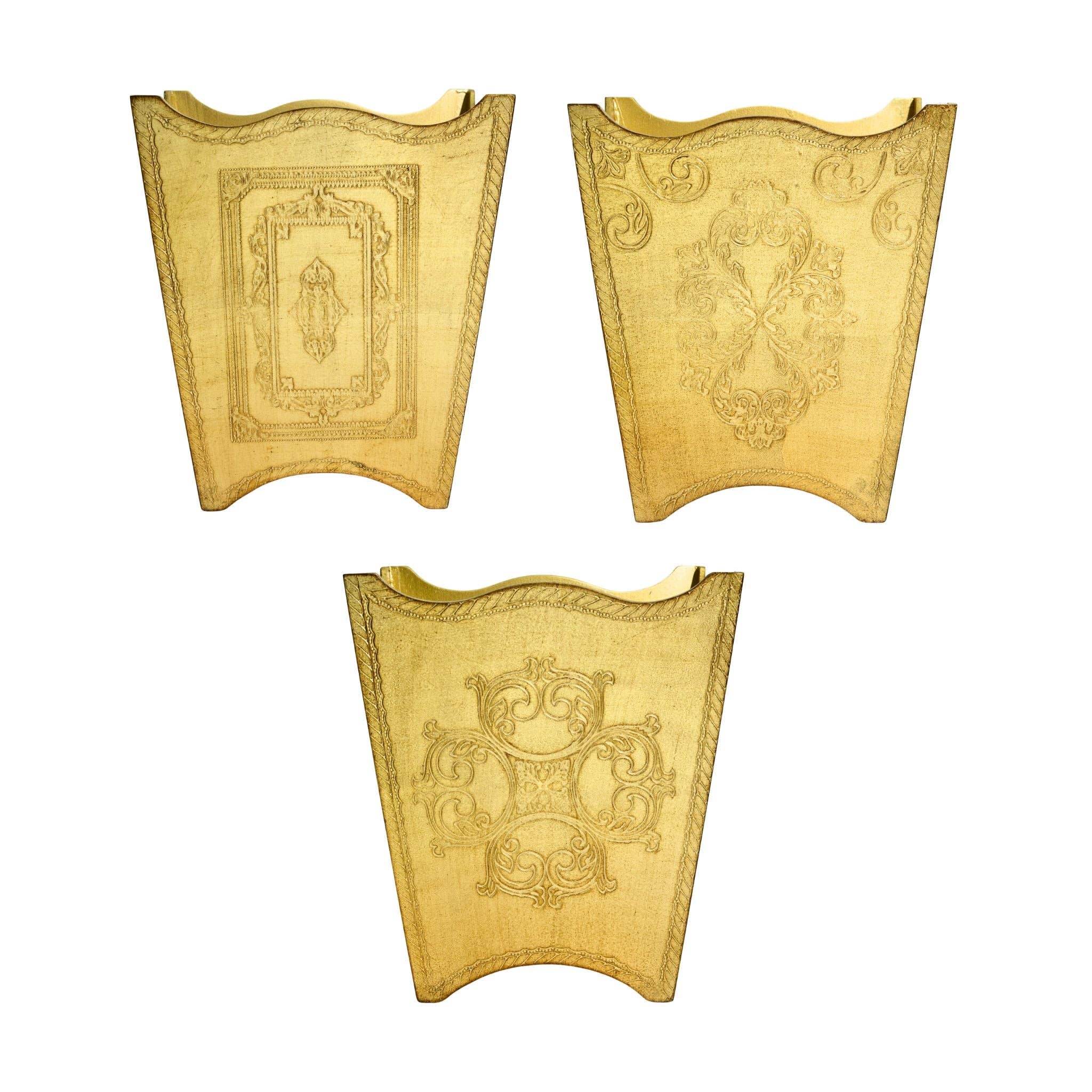 Florentijnse Gesneden Houten Prullenbak, Roze en Goud, Gemaakt in Italië
