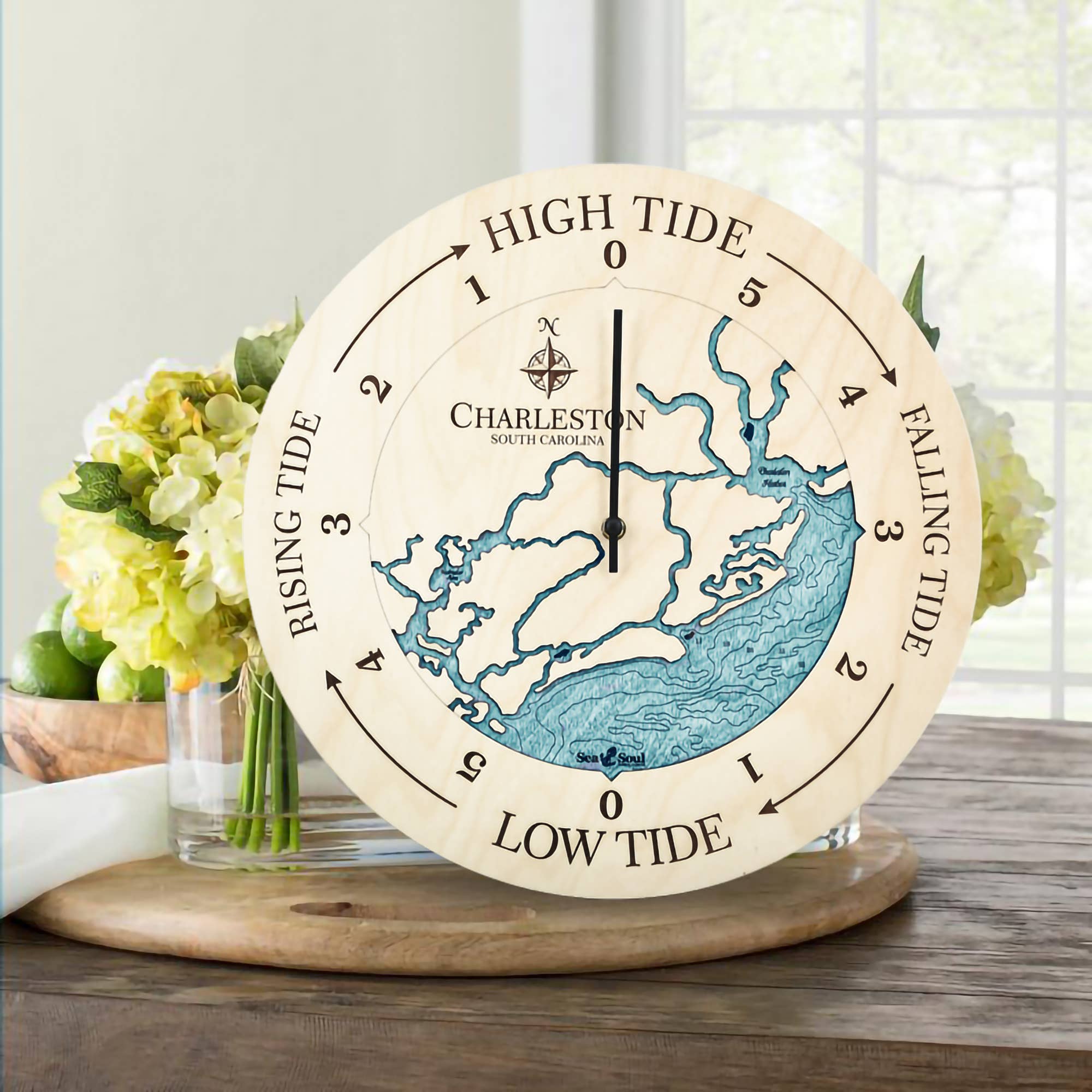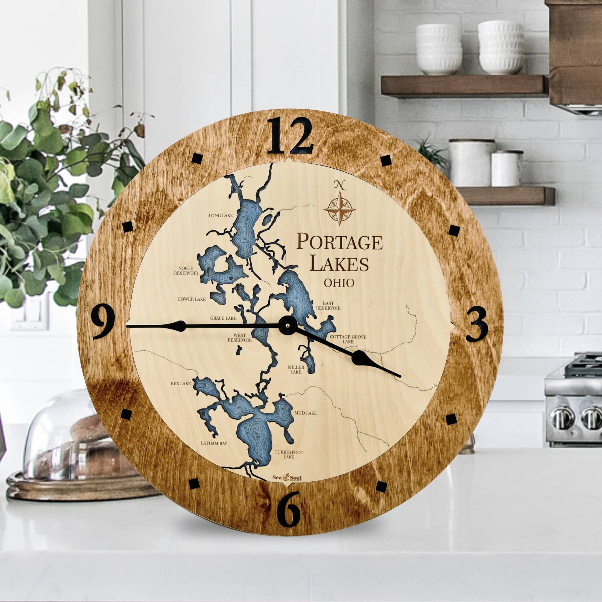 Mooie Claytor Lake Virginia Lake Map Houten Wandklok - 4 Maten · Gemaakt in de VS · Gemaakt van rijk Baltisch Berken · Maat: 12" ALLEEN BERKEN · Maat: 16”, 24” of 36” beschikbaar met Accent Ring · Verkrijgbaar in Diepblauw of Blauwgroene Waterbeits · Aangeboden in alle Berken of met Gebleekt Blauw, Driftwood Grijs, Warm Amerikaans, Gouden Honing accent ring · Quartz mechanisme werkt op één AA-batterij, niet inbegrepen. Het combineren van creatief gebruik van nieuwe technologie met traditionele technieken levert de kenmerkende uitstraling van Sea & Soul Nautical Chart Art op. Al onze topografische nautische dieptekaarten worden met prachtige details met de hand weergegeven door onze grafisch kunstenaar met behulp van een combinatie van kaarten. De kunst wordt vervolgens laser gesneden en gegraveerd in onze houtwerkplaats in Wisconsin. Onze houtbewerkers beitsen en monteren vervolgens elke kaart met de waterdieptecontouren één niveau onder de kustlijn voor een prachtig 3D-effect. Het is deze aandacht voor detail die de producten van Sea & Soul een galeriekwaliteit uitstraling en gevoel geeft.