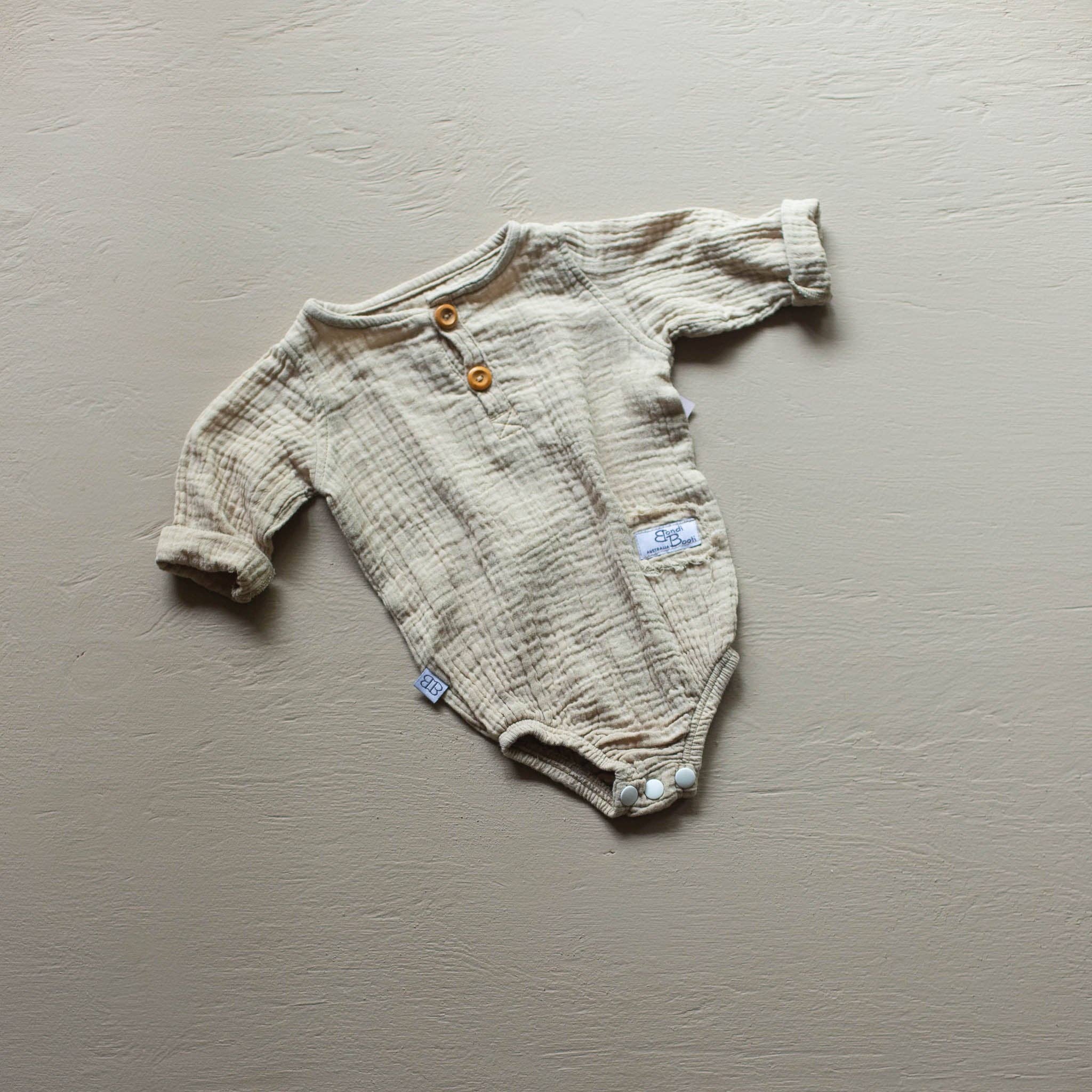 Bondi Booti Baby - Harembroek voor peuters Onze superzachte lichtgewicht harembroek is de perfecte onderkant voor warmere dagen en zwoele nachten. Geïnspireerd door familietijd buiten in het park en op het strand, zijn ze gemaakt van biologisch dubbellaags katoen om het losse oversized haremeffect te geven. De royale maat van onze harembroek en elastische taille zorgen ervoor dat ze meegroeien met je baby Onze liefde voor aardse neutrale tinten gaat verder dan esthetiek. Door stukken te maken die over verschillende geslachten kunnen worden gedragen, is het doorgeven van onze items gemakkelijker en wordt het giswerk weggenomen bij het kopen van geschenken. Dit stuk maakt deel uit van onze handgemaakte in Australia-collectie. Elk stuk in onze Australische handgemaakte collectie is misschien een beetje uniek - onze standaard en kwaliteit zijn hoog en elk klein verschil in karakter is gewoon de schoonheid van ambacht. Gids voor maat 0 - 3 m (XS) 6m - 12m (S) 12m - 24m (M) 2 - 3 jaar (L) 3 - 4 jaar (XL) Ongeveer lengte (cm) 32 35 39 45 49 Breedte ca. (cm) 16,5 17,5 19 20 21