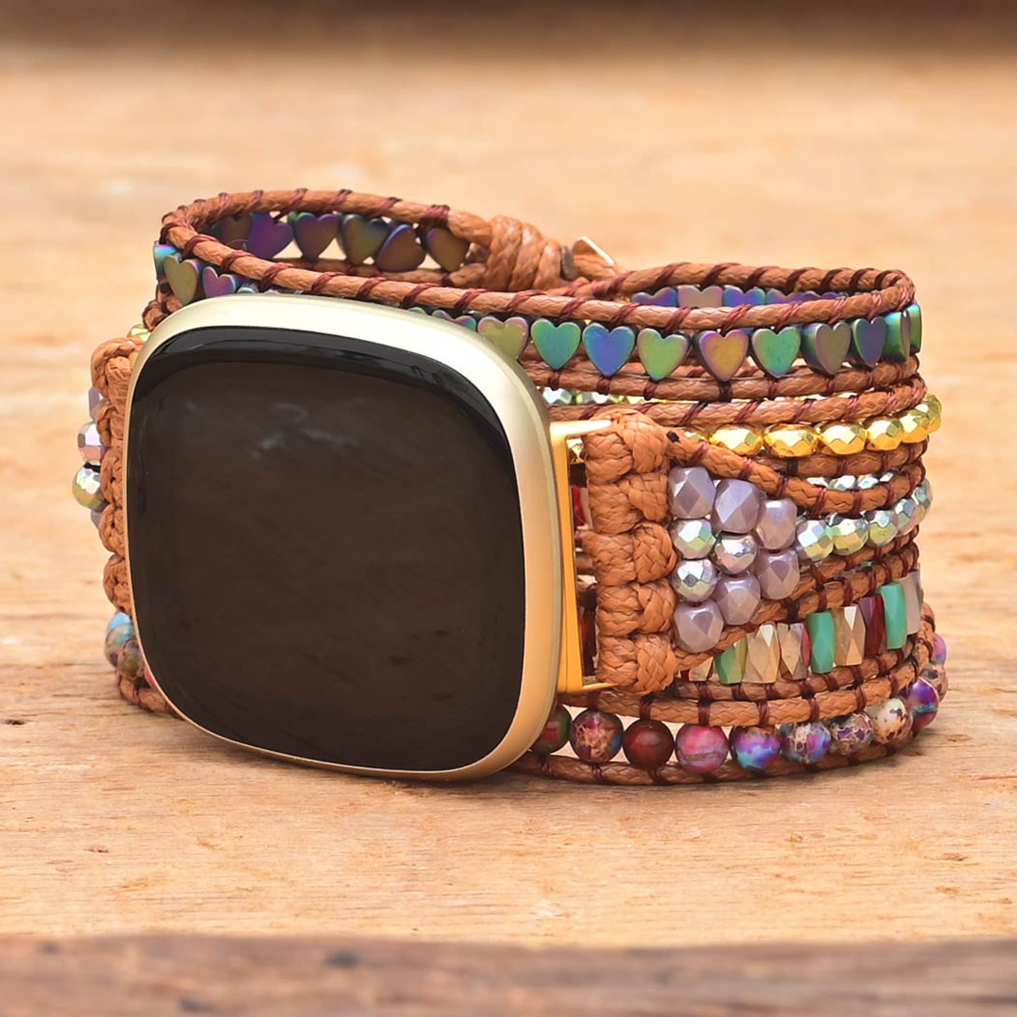 Groene Afrikaanse Jasper Bead Fitbit horlogeband, Boho-sieraden