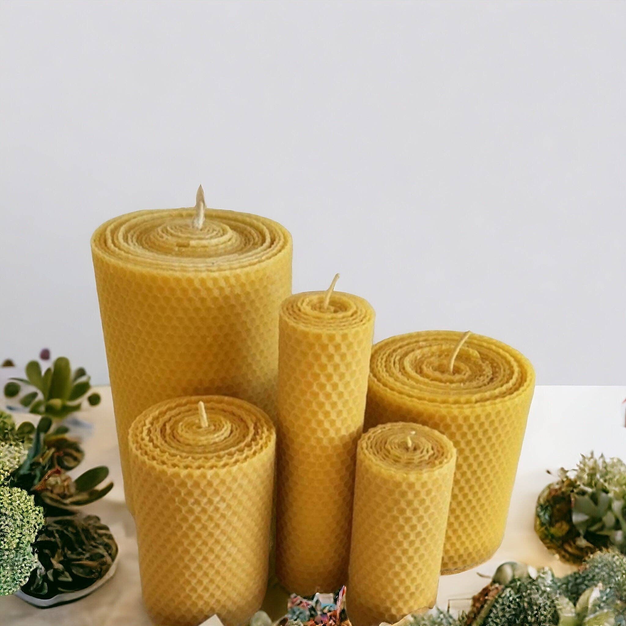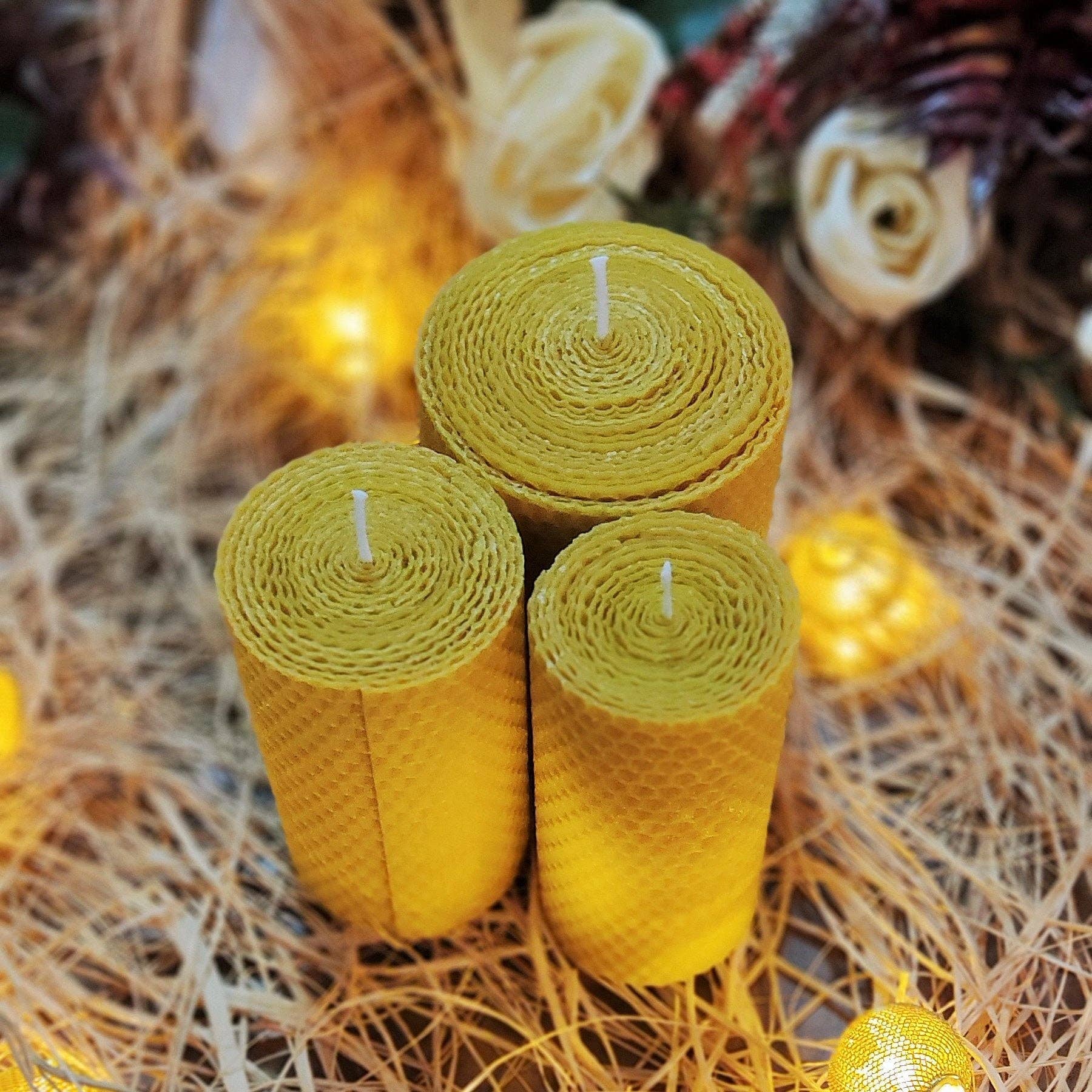 BULK bijenwaskaarsen met honingraat, gemaakt van 100% pure bijenwas. Afmetingen: - Breedte: 3 cm - Hoogte: 11 cm De brandduur is 5 uur. Omdat ze negatieve energie neutraliseren, zorgen deze kaarsen ervoor dat je snel kunt ontspannen tijdens al je rituelen. Dankzij de ademverfrissende eigenschappen van bijenwas voel je je verkwikt. Bovendien word je gereinigd en gevuld met geluk door de unieke honinggeur uit de natuur. VERZENDING Producten van bijenwas en sojawas worden verzonden via expresverzending volgens de regelgeving van mijn land. De productie duurt 2 dagen. Ik verzend het via UPS expresvervoer en de door het bedrijf opgegeven levertijd is tussen de 2 en 5 dagen.