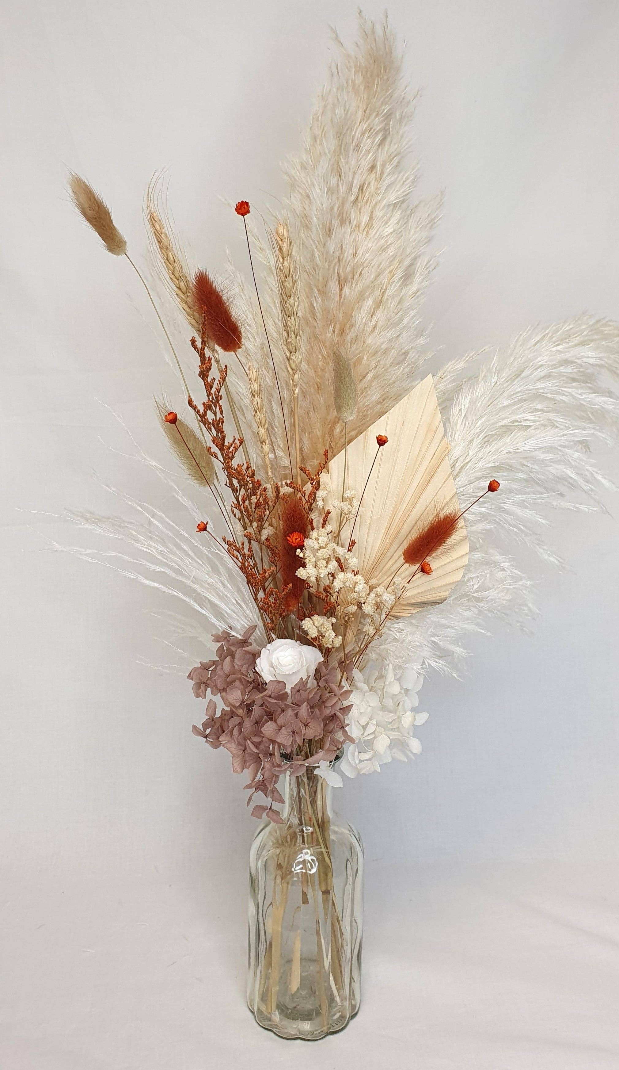 Pampagras en konijnenstaarten in een prachtige monochrome kleurencombinatie - Wit pampagras met gemengde zwarte en grijze konijnenstaarten, gedroogde stelen. ********************** 15 stelen klein wit pampagras met 30 stelen konijnenstaarten (15 stelen zwarte konijnenstaarten en 15 stelen lichtgrijze konijnenstaarten) Stelen met een lengte van 60 cm ********************** Alleen de pampasgrasstelen met konijnenstaart van topkwaliteit worden geselecteerd en verpakt in een milieuvriendelijke kraftdoos. Elke steel wordt geïnspecteerd om er zeker van te zijn dat ze niet gebroken zijn. Ze staan prachtig op zichzelf in een vaas, of als onderdeel van een droogbloemenarrangement. Onderhoudsinstructies inbegrepen. Het pampasgras en de konijnenstaarten blijven jaar na jaar mooi met heel weinig onderhoud. Perfect cadeautje dat rechtstreeks aan je familie en vrienden kan worden bezorgd als verjaardags-, jubileum-, beterings-, bedankje- of housewarmingcadeau. Ook geweldig voor doe-het-zelfprojecten, boho-huwelijksdecoraties of als toevoeging aan je taartdecoratie