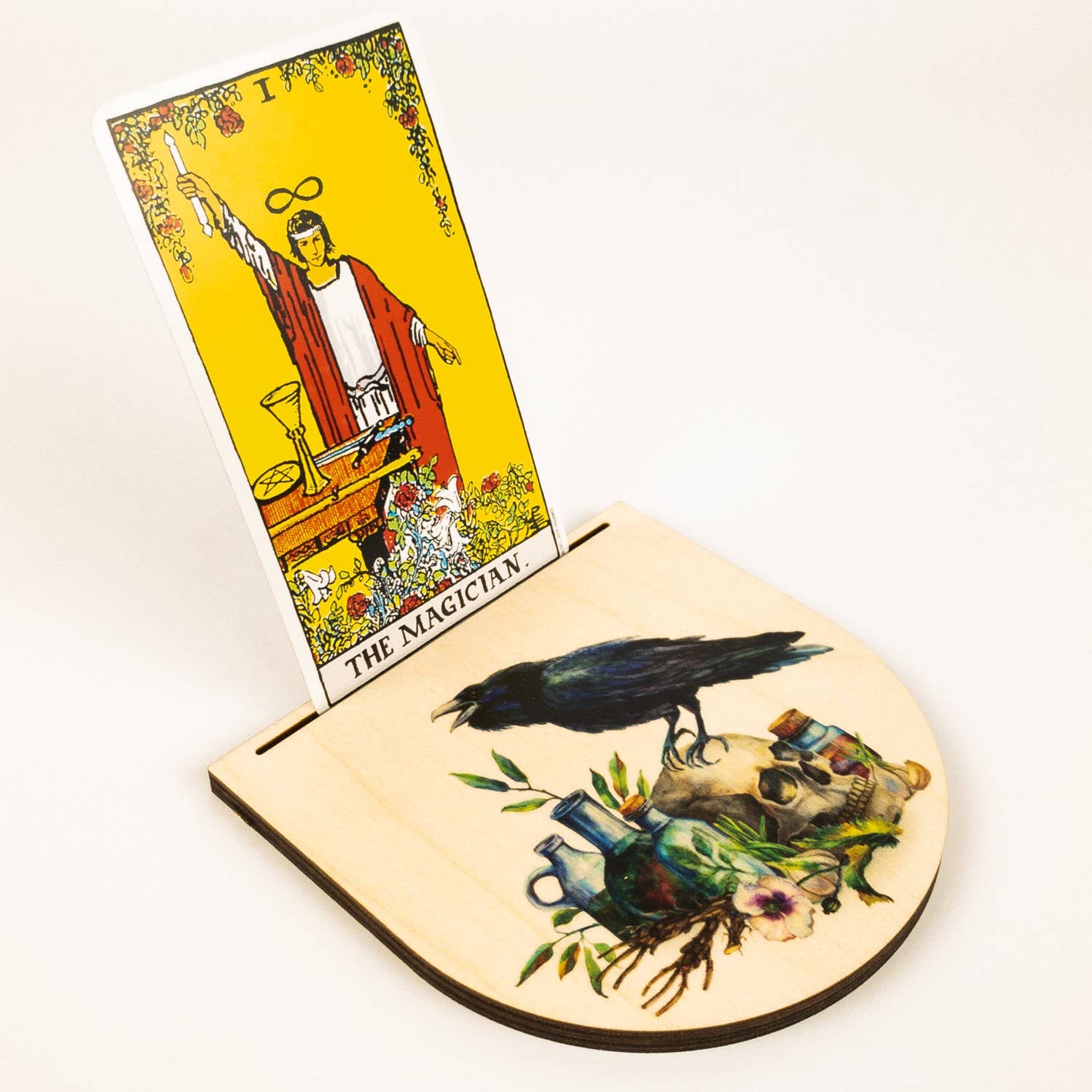 Tarotkaarthouder met maangezicht.* Verhoog uw tarotkaartlezingen met onze prachtige tarotkaarthouder op tafelblad! Met zorg gemaakt in de VS van hoogwaardig MDF, is deze houder zowel duurzaam als stijlvol. Met zeven unieke ontwerpen om uit te kiezen, vind je zeker de perfecte match voor jouw persoonlijke stijl. Houd je tarotkaarten georganiseerd en gemakkelijk toegankelijk tijdens het lezen met deze compacte en functionele houder. Verbeter uw tarotkaartcollectie vandaag nog met onze tarotkaarthouder voor op tafel!