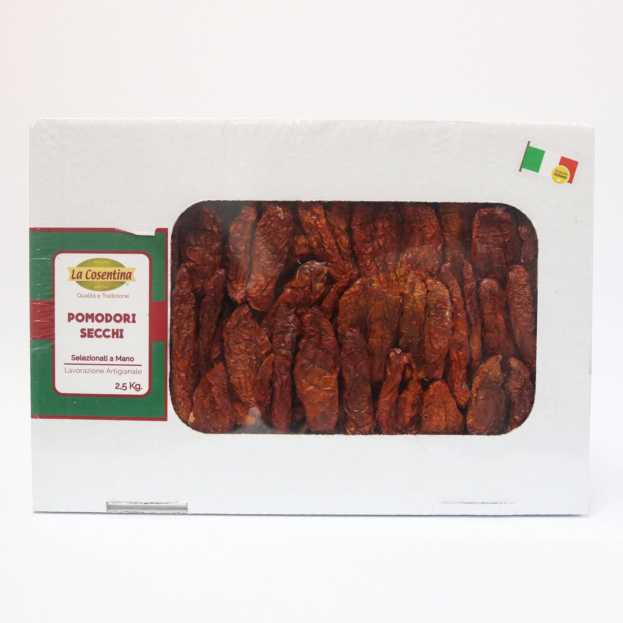 Italiaanse zongedroogde tomaten. Een van de lekkerste producten die ons zijn nagelaten door de agrovoedingstraditie van Calabrië en Puglia. Ze zijn van nature in de zon gedroogd en kunnen in verschillende recepten worden gebruikt. Ideaal pakket voor het gezin. INGREDIËNTEN: Gedroogde tomaten, zout. IN DE ZON GEDROOGD EN MET DE HAND GESELECTEERD!