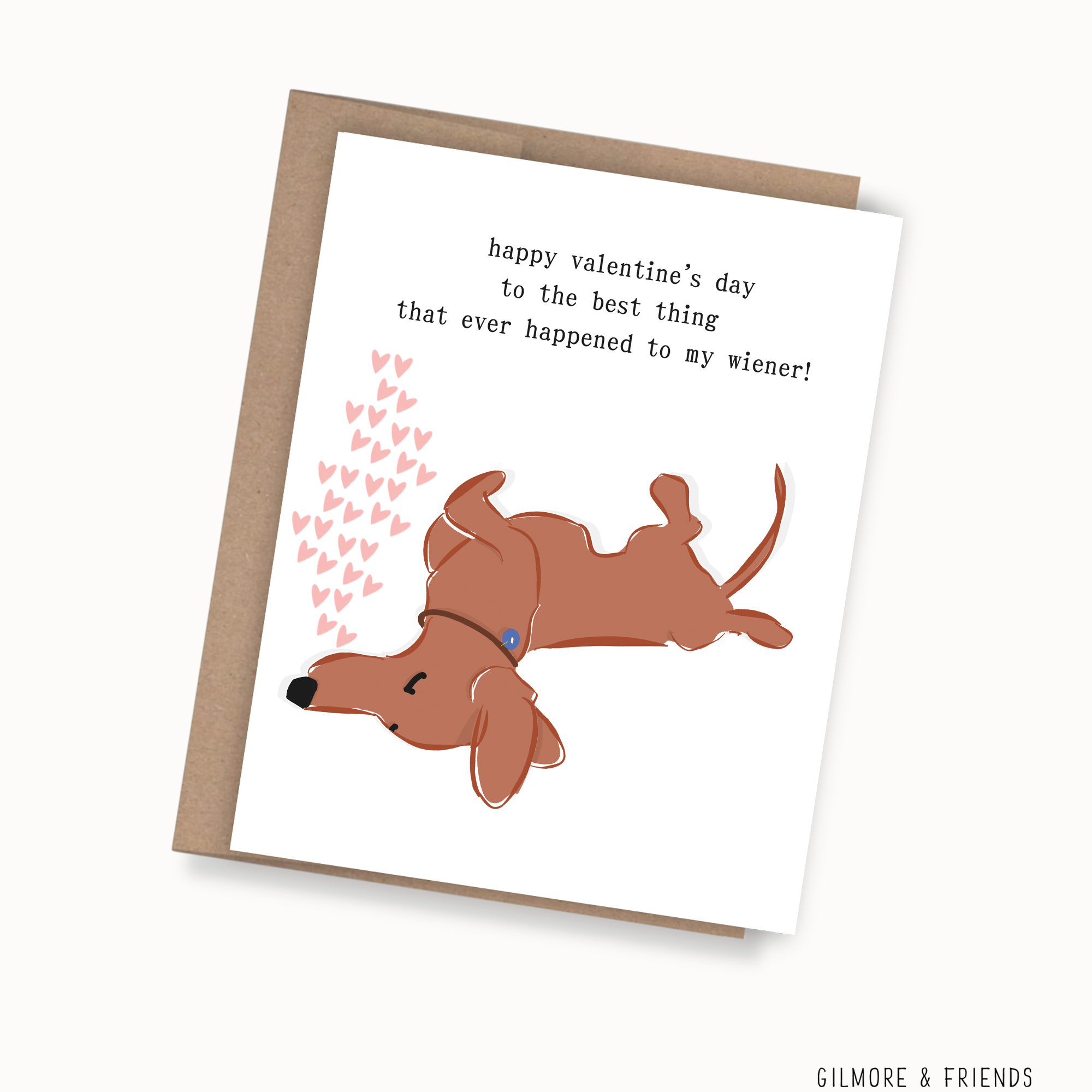 Valentijnsdag is een van die dagen waarop het leuk is om fris te zijn! Metallic Accenten/Folie Gilmore & Friends met een beetje ondeugendheid... onze speelse tekeningen met grappige uitspraken om uw klanten te laten glimlachen en misschien zelfs hardop te laten lachen! Ze hebben misschien geen teckel, maar iedereen kent wel iemand met een worstje. Voorraad inslaan en deel de vreugde! Vergeet niet de achterkant van de Gilmore & Friends wenskaarten te bekijken, die zijn net zo leuk als de voorkant!