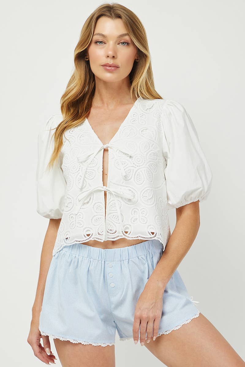Broek van katoenen gauze met een elastische tailleband voor een comfortabele pasvorm. Heeft contrasterende stof bij de zakken en knieën. Voorzien van een trekkoord in de taille en geribbelde boorden aan de onderkant van de pijpen. Past bij de bijbehorende top 932NT.