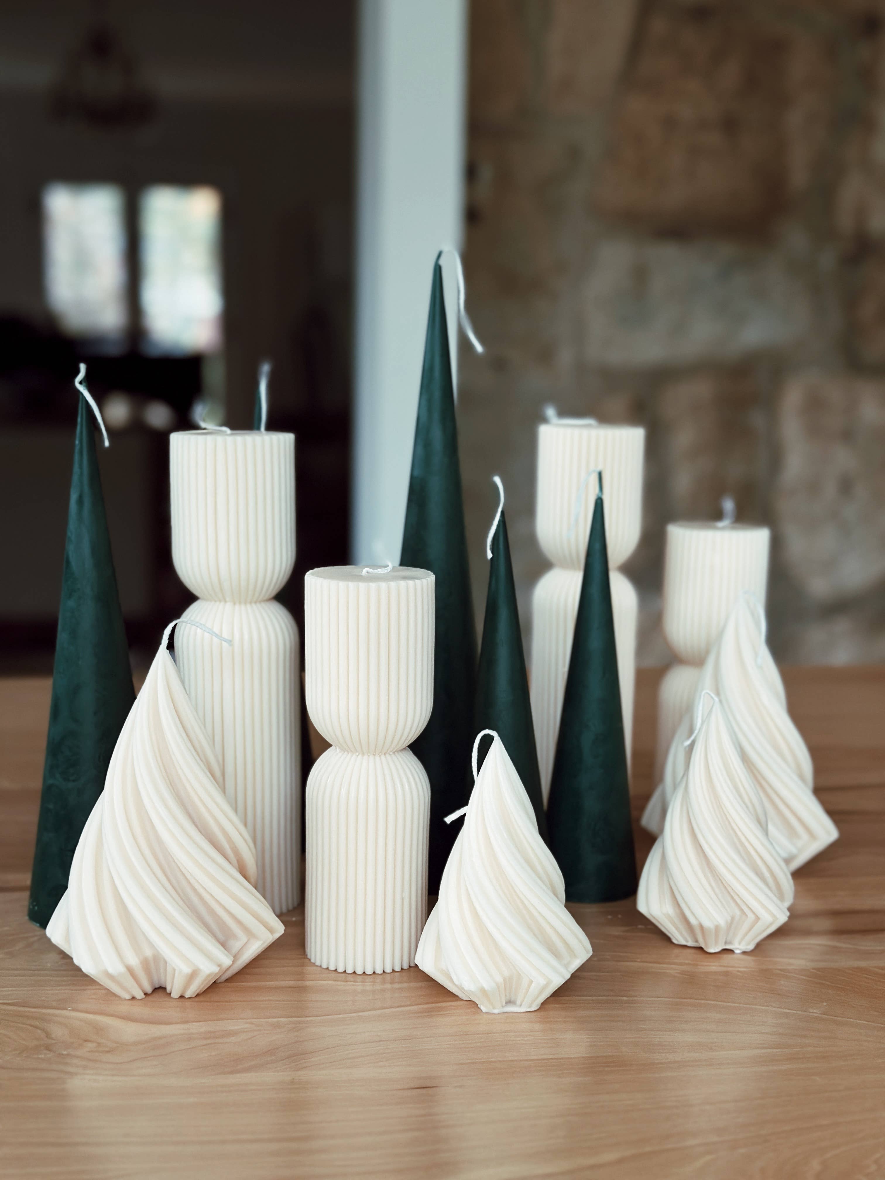 Handgemaakte Spire Kegelkaarsen in zwart en naturel