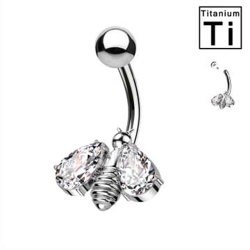 CZ GEASFALTEERDE BLADHANGER 316L NAVELRING VAN CHIRURGISCH STAAL
