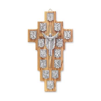 Gemaakt in Italiƫ door Ghirelli, deze rozenkrans voor mannen is sterk, solide en heeft een mannelijk ontwerp, met Italiaanse olijfhouten kralen van 8 mm en zwarte hematiet- en agaatkralen van 8 mm met een satijnen afwerking. Een absoluut meesterwerk met een uniek en origineel ontwerp van Italiƫ's vooraanstaande rozenkranskunstenaar. Kralen: Italiaanse olijfhouten kralen van 8 mm met 8 mm halfedelsteen hematietkralen. Ook voorzien van halfedelsteen hematiet agaat zwarte kralen van 8 mm met satijnen afwerking Kruis: Een absoluut meesterwerk met een uniek en origineel ontwerp exclusief door Ghirelli met het contemplatieve gezicht van de gekruisigde Jezus, dat de pijn uitdrukt die tijdens de Passie werd gevoeld Middelpunt: Simpelweg uniek, het bevat in zijn details de boodschap van Liefde van de Allerheiligste Harten van Jezus en Maria Afwerking: Antiek zilver Stijl: Hedendaags Handtekening: Ghirelli Branding Bar toont authenticiteit en Made In Italy kwaliteitsgarantie