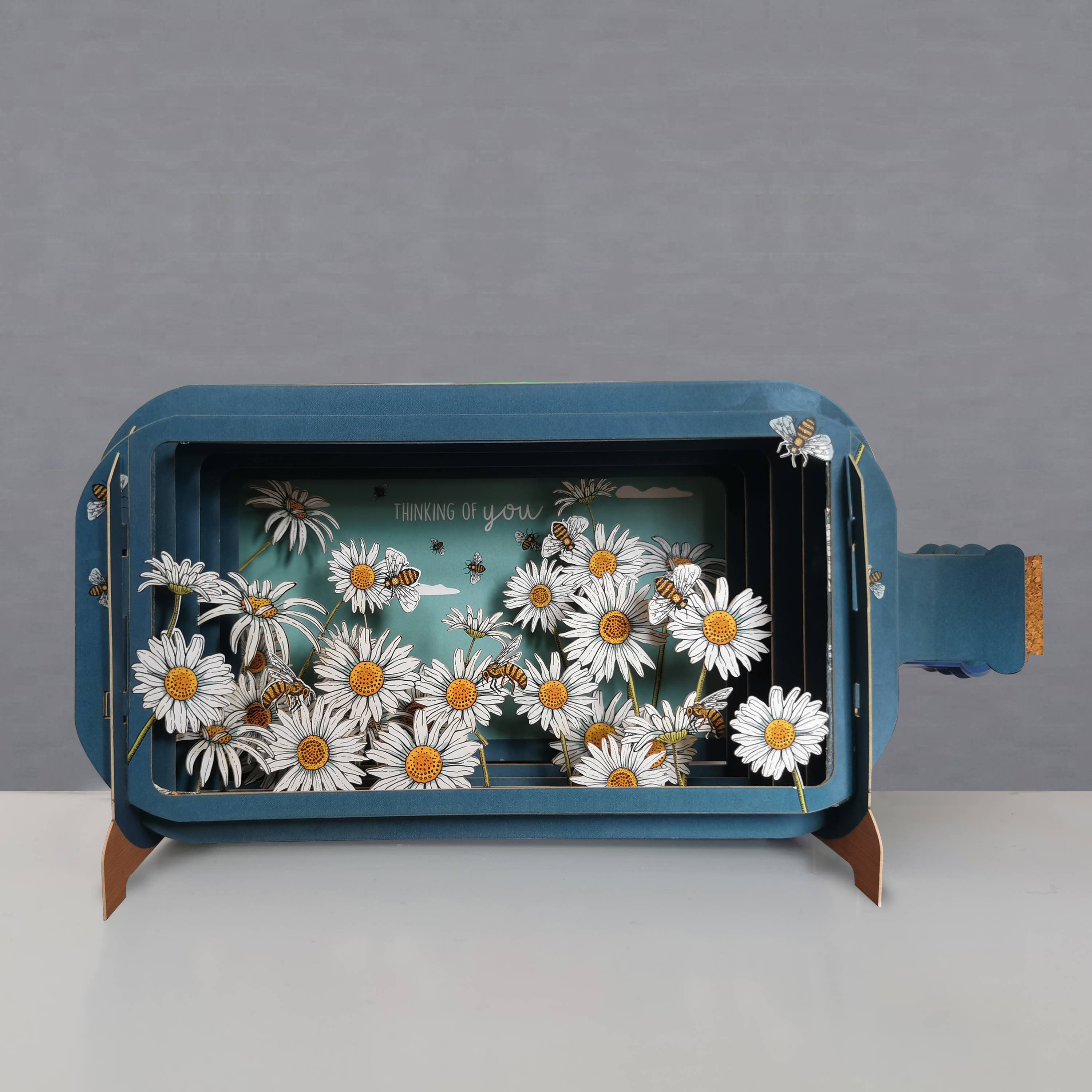 Pop-up kaart 'Message in a Bottle' met madeliefjes en bij