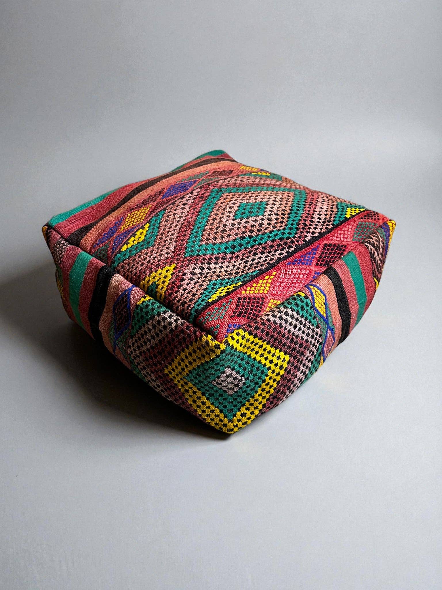 Uniek gepatroneerde vloerkussens maken een unieke statement in elke ruimte. Veelzijdige functionaliteit voor gebruik als extra zitplaats, beensteun of zelfs als hondenbed. Je kunt poefs stapelen voor extra hoogte en ruimtebesparing. IMPACT Hergebruikte vintage tapijten eren de geschiedenis van het tapijt en het vakmanschap van generaties. DETAILS 24"-26" vierkant x 10" hoog, wanneer gevuld * Alleen hoes. * Samenstelling: Natuurlijke wol, katoen Voorzien van rits aan de onderkant van de naden. Super eenvoudig om de vulmaterialen via de rits toe te voegen! Gebruik gerecycled vezelvulling, of huishoudelijke items zoals linnengoed/dekens/kussens, zelfs kleding. Hoe meer je toevoegt, hoe steviger het aanvoelt. Tags: Vloerkussen Vintage Textiel Poef Marokkaanse Poef