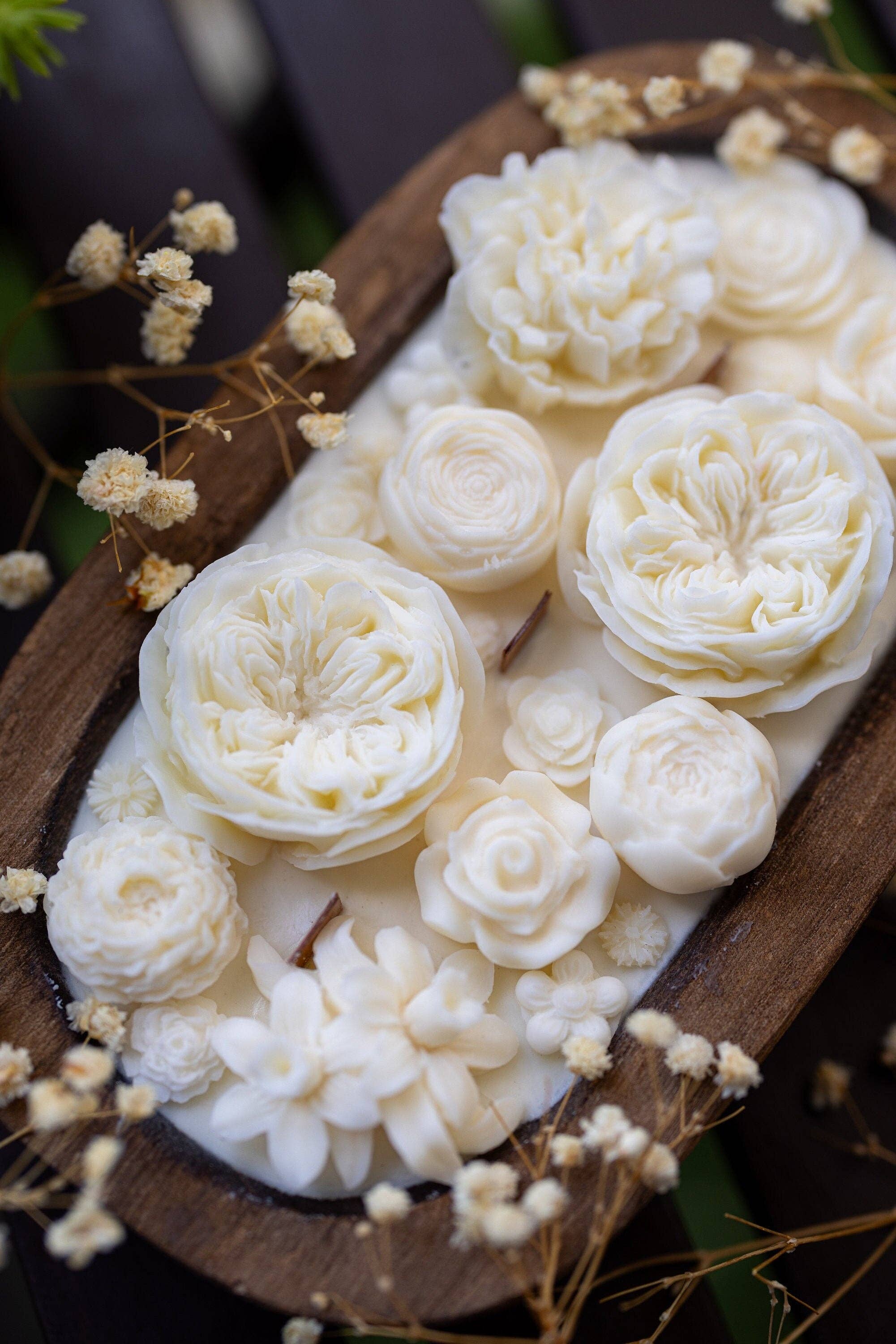 Dough Bowl-kaars met houten lont en sojawas | Rozenblaadjes en rozentuin geur | Boerderijstijl | 3 houten lonten | Zomerse geuren