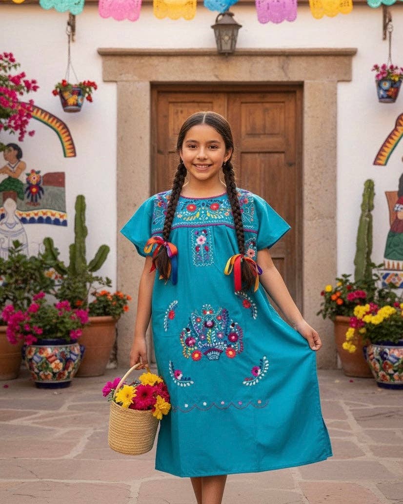 Nieuwe Mexicaanse jurk voor meisjes! Onze jurken zijn handgemaakt, we gebruiken een katoenmix, erg fris en zacht. Het handborduurwerk is gemaakt met katoendraad De jurk die je ontvangt is misschien niet degene op de foto's, elke jurk is uniek in zijn soort.