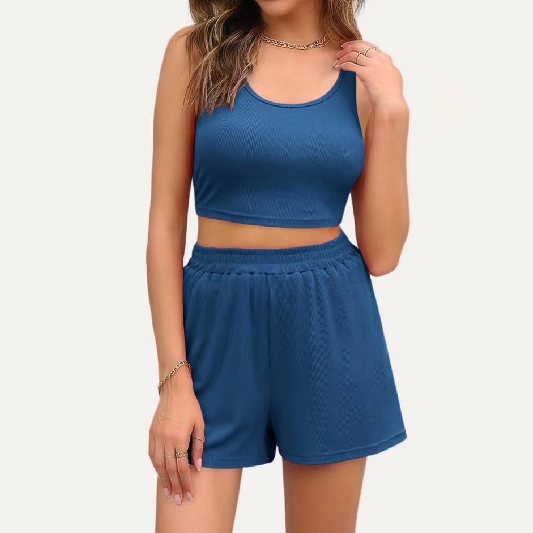 Feel Cozy loungewarset met korte mouwen en crop-top en broek