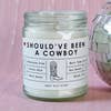 Should Been A Cowboy Candle - Rambling Caravan-kaarsen zijn geïnspireerd op thuis, op reis en op avontuur. De kaarsen zijn gemaakt van een wasmengsel op basis van soja en kokosnoot en worden met de hand gegoten in Virginia Beach, Virginia. We gebruiken ftalaatvrije geurstoffen en hebben een assortiment aan geuren om uit te kiezen. Veel van onze kaarsen hebben ook verschillende kleurlabels om uit te kiezen. We gebruiken katoenen lonten zonder zink of lood. De brandtijd bedraagt ongeveer 50 uur.