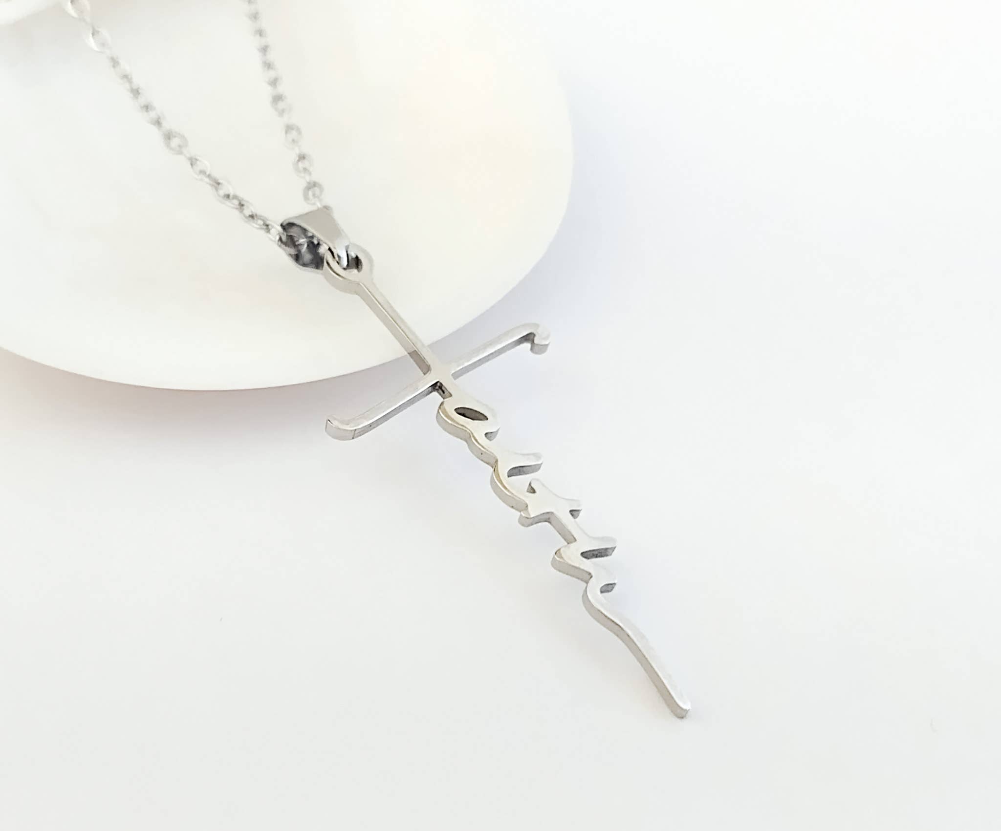 Gemaakt in Verenigde Staten Kleur: Zilver Materiaal: Rhodium Stijl: Minimalistisch Thema: Religie en spiritualiteit Productmaterialen: Plasticvrij Verpakking: Gerecycled, Plasticvrij, en Recyclebaar Productie: Transport met een lage impact