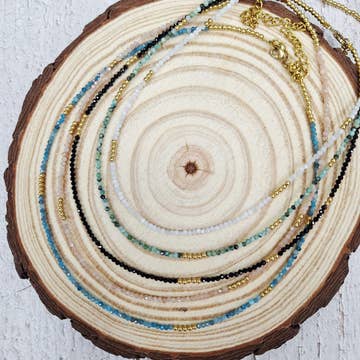 De Sprinkles Layering Necklace in Parel is voor de vrouw die haar sieraden ziet als een essentieel onderdeel van haar expressie. Ze houdt ervan om veel sieraden in haar garderobe te hebben, om met opzet te combineren, en weet hoe ze kleur moet gebruiken! In onze lente collectie hebben we ons gericht op de tinten van kusttrends waar uw klanten dit seizoen dol op zullen zijn. De Sprinkles Necklace barst van de kleinste edelsteen hangers die allemaal langs een enkele dichte ketting zijn gegroepeerd. De veelzijdigheid en kleuropties maken het een bestseller van het merk. Verstelbaar voor veelzijdigheid, het is een tijdloos stuk dat naadloos overgaat van informele naar formele omgevingen. We hebben niet alleen samengewerkt met Anthropologie, Anthropologie Europe en Sundance, maar ook met meer dan 600 extra retailers in het hele land, en we zouden graag de volgende samenwerking met u aangaan! Hypoallergeen, natuurlijke stenen, 16" lengte met karabijnsluiting en eindketting om de lengte aan te passen.