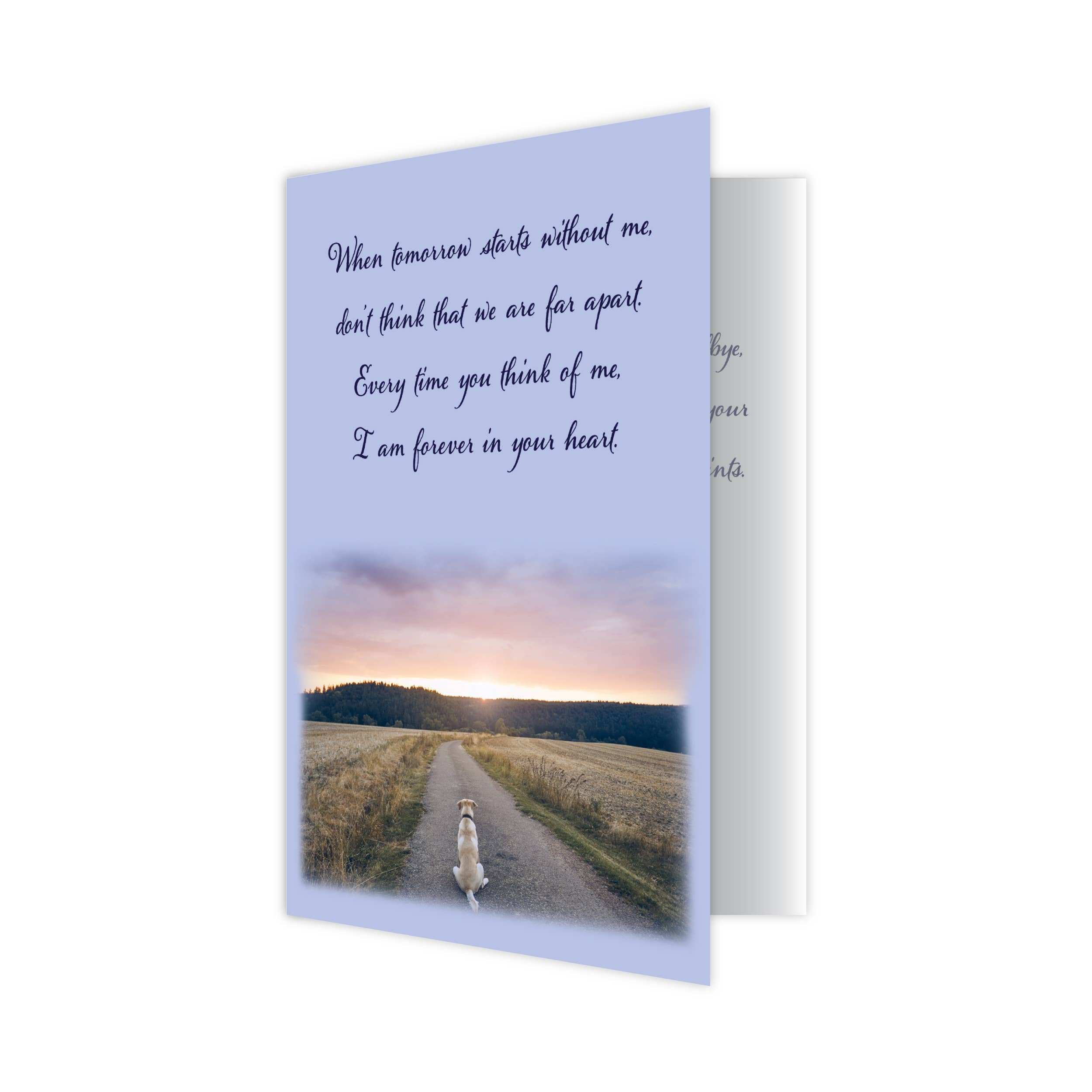 Voorkant leest: "Tijd Zal Je Hart Genezen" Binnenkant leest: "Herinneringen Zullen Je Ziel Troosten Met Medeleven"