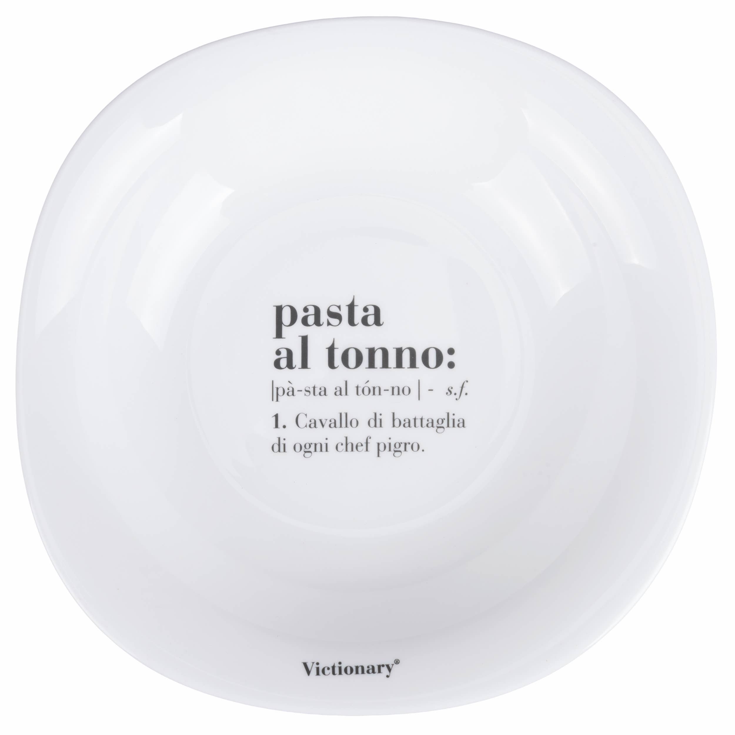 Vierkant diep bord Victionary In opaalglas Afmetingen: l. 23 x d. 23 cm Met Victionary Spaghetti definitie Geschikt voor magnetron Vaatwasmachinebestendig Kleur: wit
