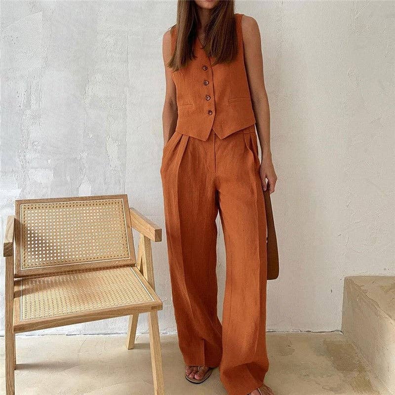 Er zijn nog geen beoordelingen voor Effen Kleur Mouwloos Vest Wijde Broek Set.