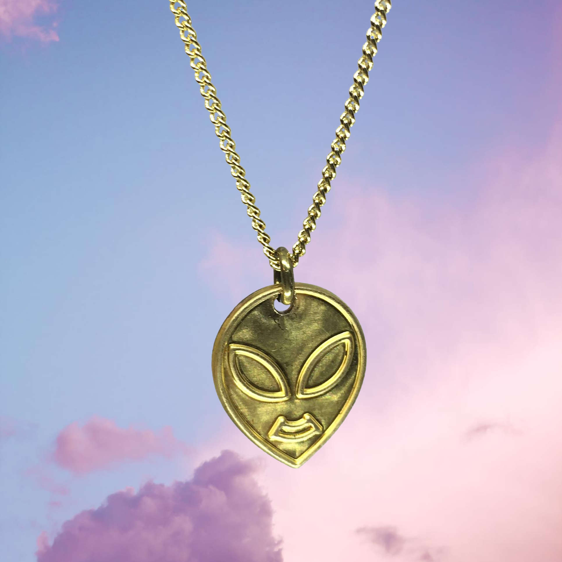Gepolijst messing klein ijshoorntje hangt aan een sterke, delicate 18" of 24" vergulde stalen schakelketting. Bevestigd met een kleine karabijnsluiting.