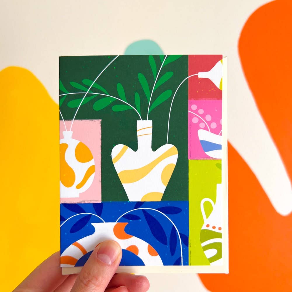 Een met de hand geïllustreerde verjaardagskaart met een heerlijk chagrijnige kat in een kleurrijke feesthoed, die onder protest viert. Met de hand geschreven "Happy Birthday" op een gespikkelde crèmekleurige achtergrond met een gedurfde terracotta rand en speelse geschulpte lijst. Past goed bij: andere kattenkaarten, grappige verjaardagskaarten en aanmoedigingskaarten. • Binnenkant blanco • Gedrukt op #120 Eggshell Heavyweight papier • Formaat: Gevouwen 4,25 x 5,5 inch (A2) • Een bijpassende envelop is inbegrepen • Individueel verpakt in hersluitbare zakjes • Geïllustreerd en gedrukt in de VS © Esther Nariyoshi, LLC