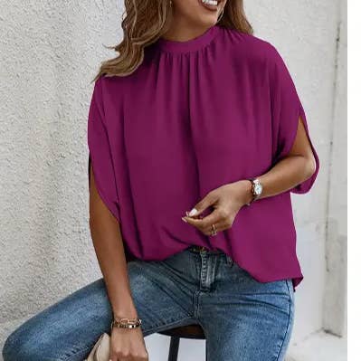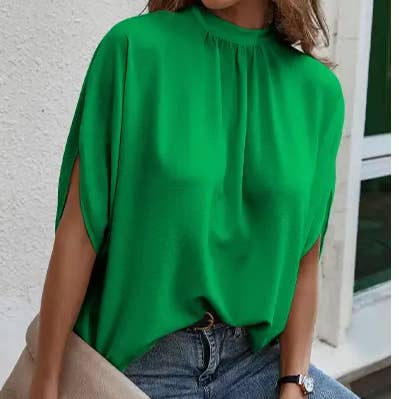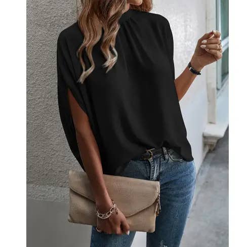 V-hals formele vleermuismouw halve mouw losse blouse