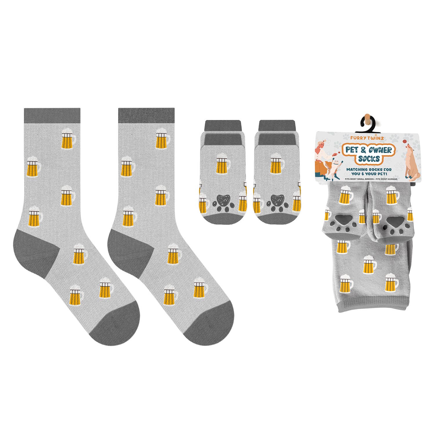 Omvat: een paar voor jou en een paar voor je harige vriend. Geschikt voor de meeste kleine rassen. Geschikt voor de meeste mensen Materiaal: 97% polyester, 3% elastaan Herbruikbaar en wasbaar Onderhoud: koud wassen in de wasmachine met soortgelijke kleuren, niet bleken, in de droger drogen.