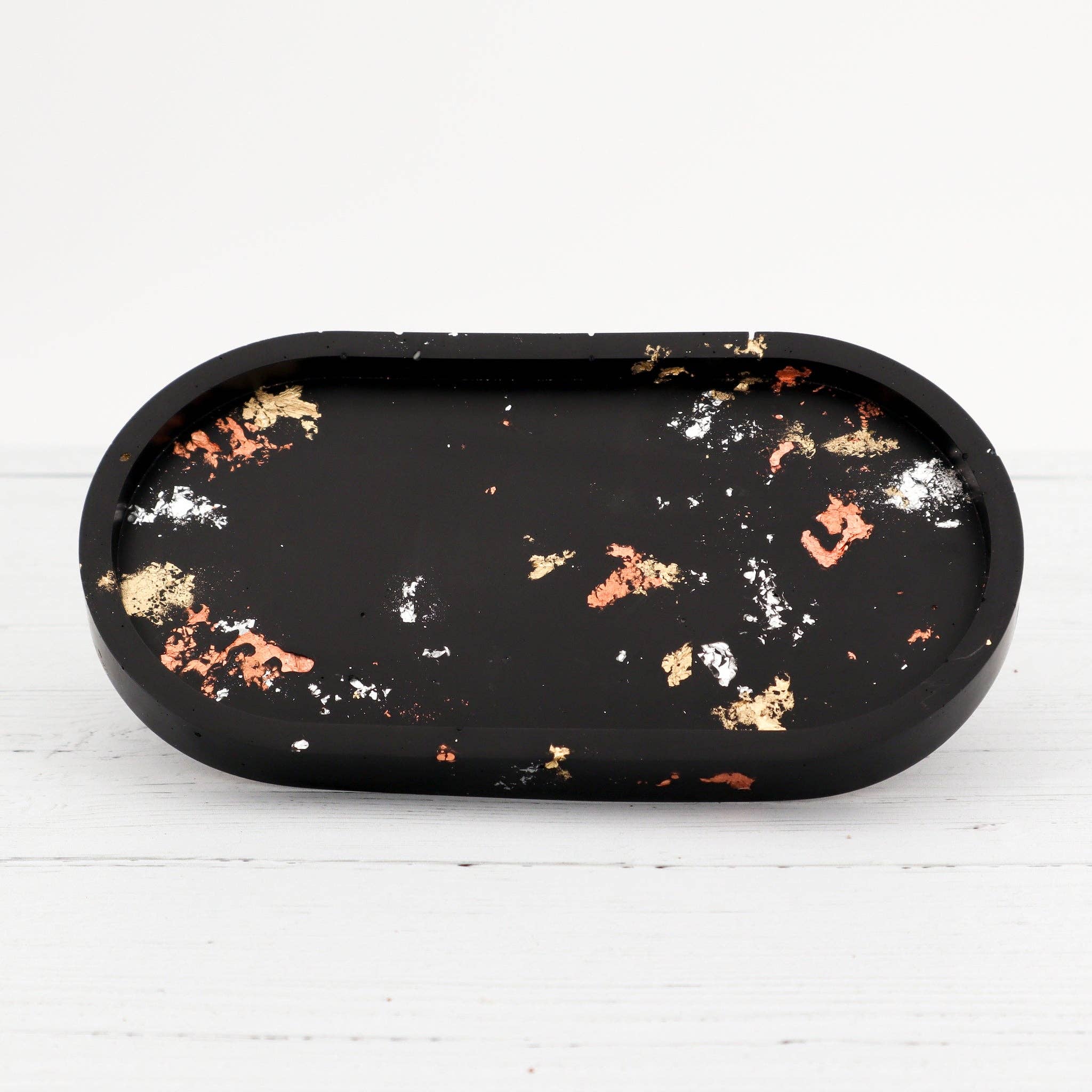 Handgemaakt Jesmonite groot cirkelvormig dienblad - zwart en gekleurd blad
