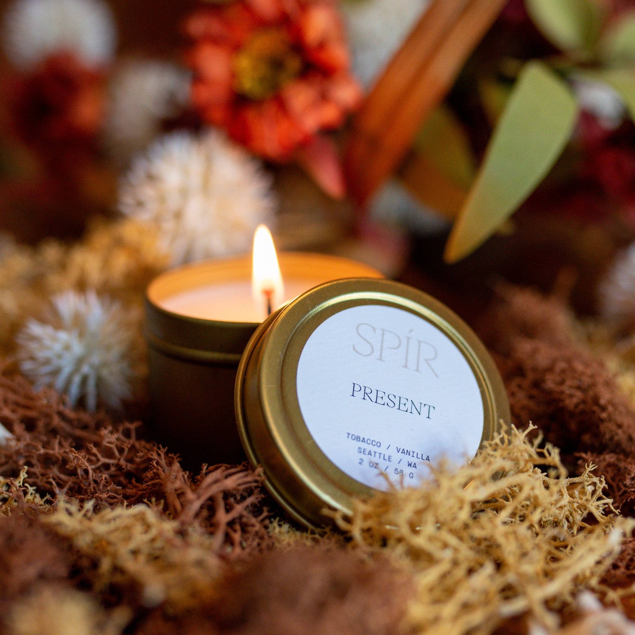 SKU: Present_BlackTin Gemaakt in Verenigde Staten Brandtijd: 50 uur Geur: Aard- en houtachtig Geurfamilie: Aards & houtachtig Handgemaakt: Ja Kleur: Beige en Zwart Maat: 9 oz Materiaal: Aluminium Navulbaar: Ja Seizoen: Hele jaar door en Herfst Voordeel: Ontspannend Wastype: Soja, kokosnoot Producttaal: Engels Gewicht: 255,15 g (9 oz) Productmaterialen: Plasticvrij Verpakking: Gerecycled en Recyclebaar Productie: Ethisch verantwoord