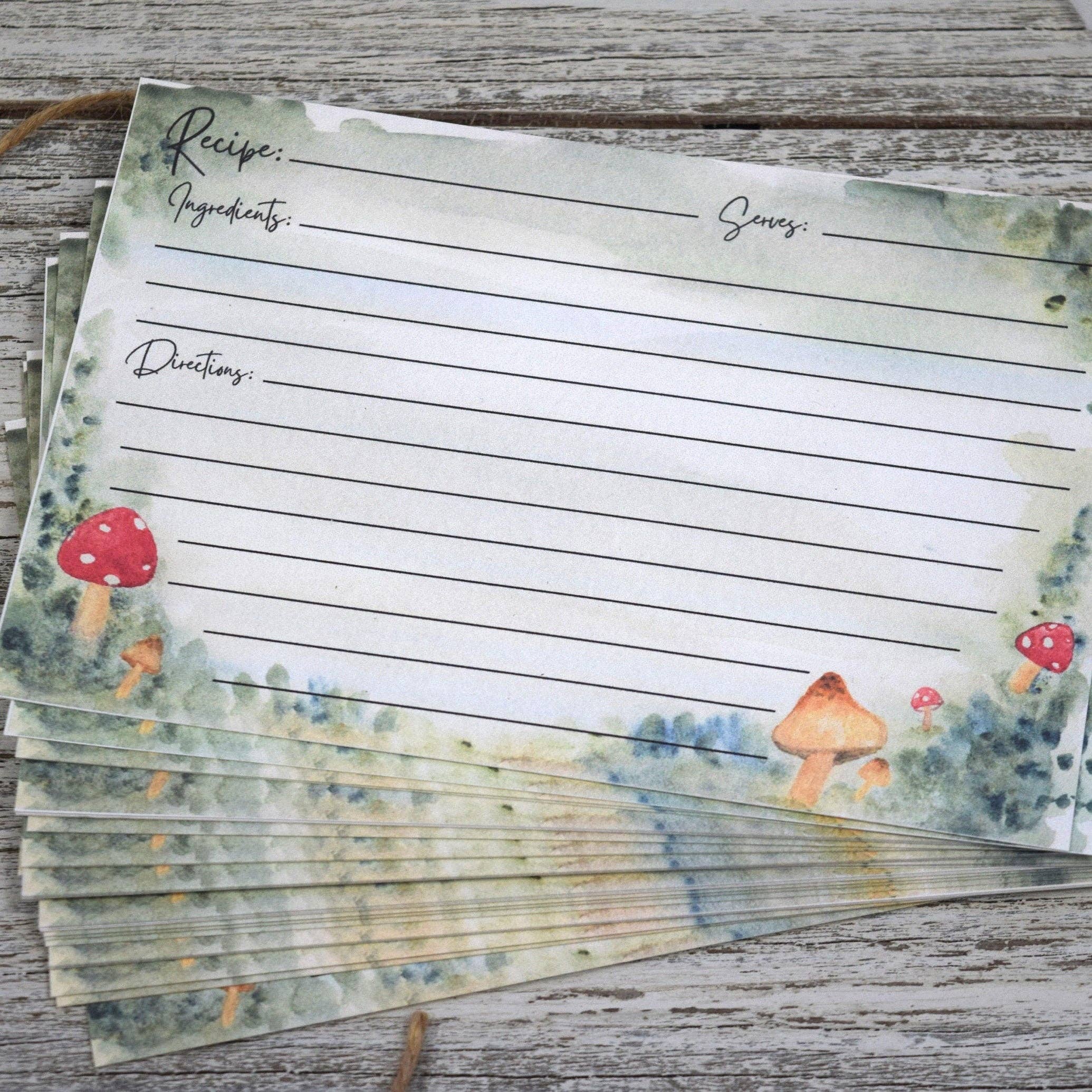 Handgeschilderde receptenkaarten, bosthema, paddenstoel en eikel, keukendecor, aangepaste formaten, 4x6, 3x5 Deze receptenkaartenset bevat 40 bijpassende kaarten, met een aquarel van paddenstoelen en eikels op een groen/bruine achtergrond. Ik heb het ontwerp op aquarelpapier geschilderd, de illustraties gescand met een hoogwaardige kunstscanner en ze op een document ontworpen. Ze zijn klaar om te printen! Deze kaarten zouden de perfecte finishing touch geven aan je nieuwe receptendoos! Kies je maat; we bieden de maten 3x5 of 4x6 aan. Het ontwerp is gedrukt op een indexkaart met een gewicht van 80 pond. De kaarten zijn blanco op de achterkant. Elke set wordt veilig verpakt en verzonden in een handgemaakte kartonnen doos. Al het noppenfolie en pakpapier wordt hergebruikt van eerdere zendingen, zodat dit papier en plastic niet op de stortplaats terechtkomen! Bedankt voor het kijken!