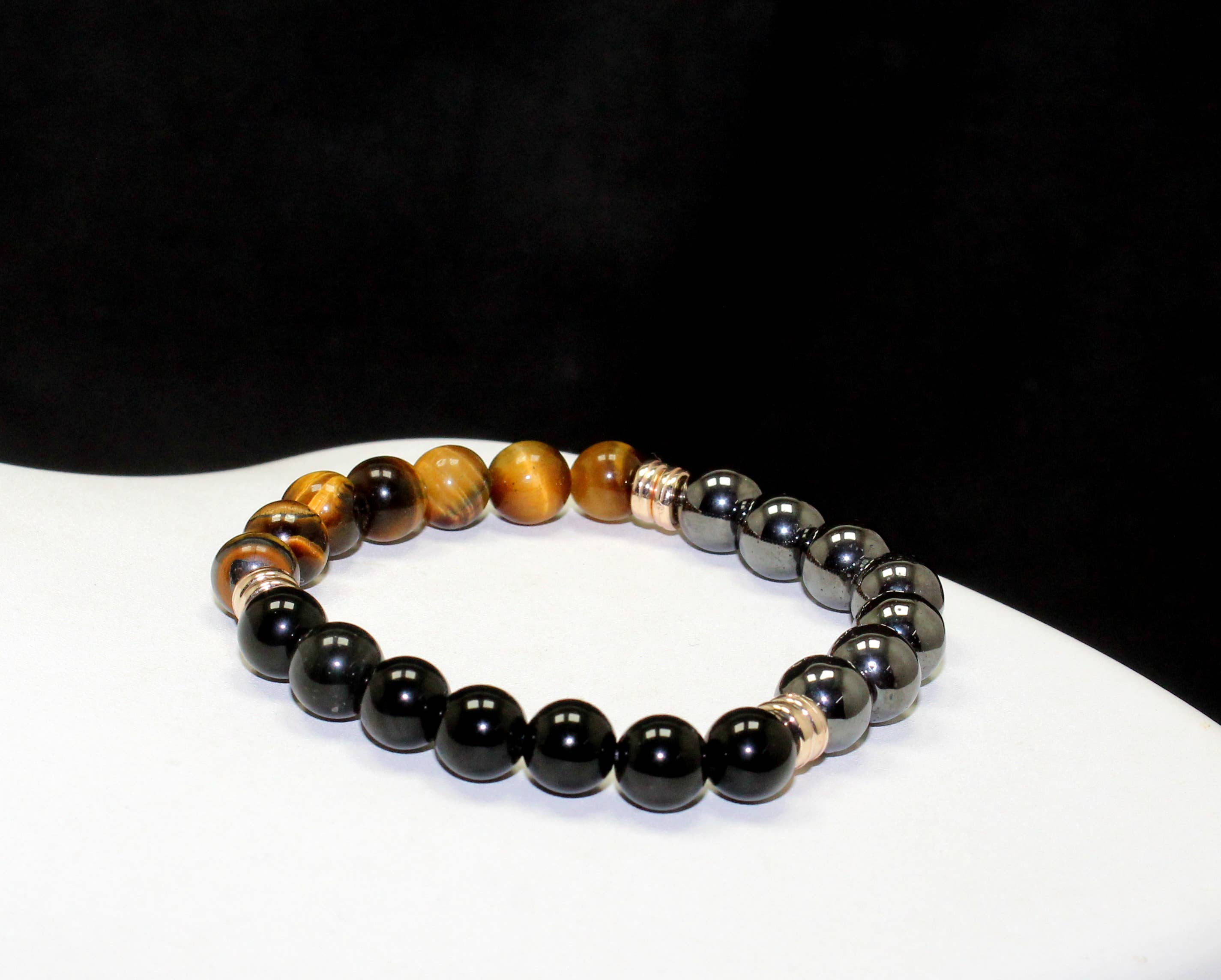 Drievoudige Beschermingsarmband - Tijgeroog, Zwarte Onyx en Lava