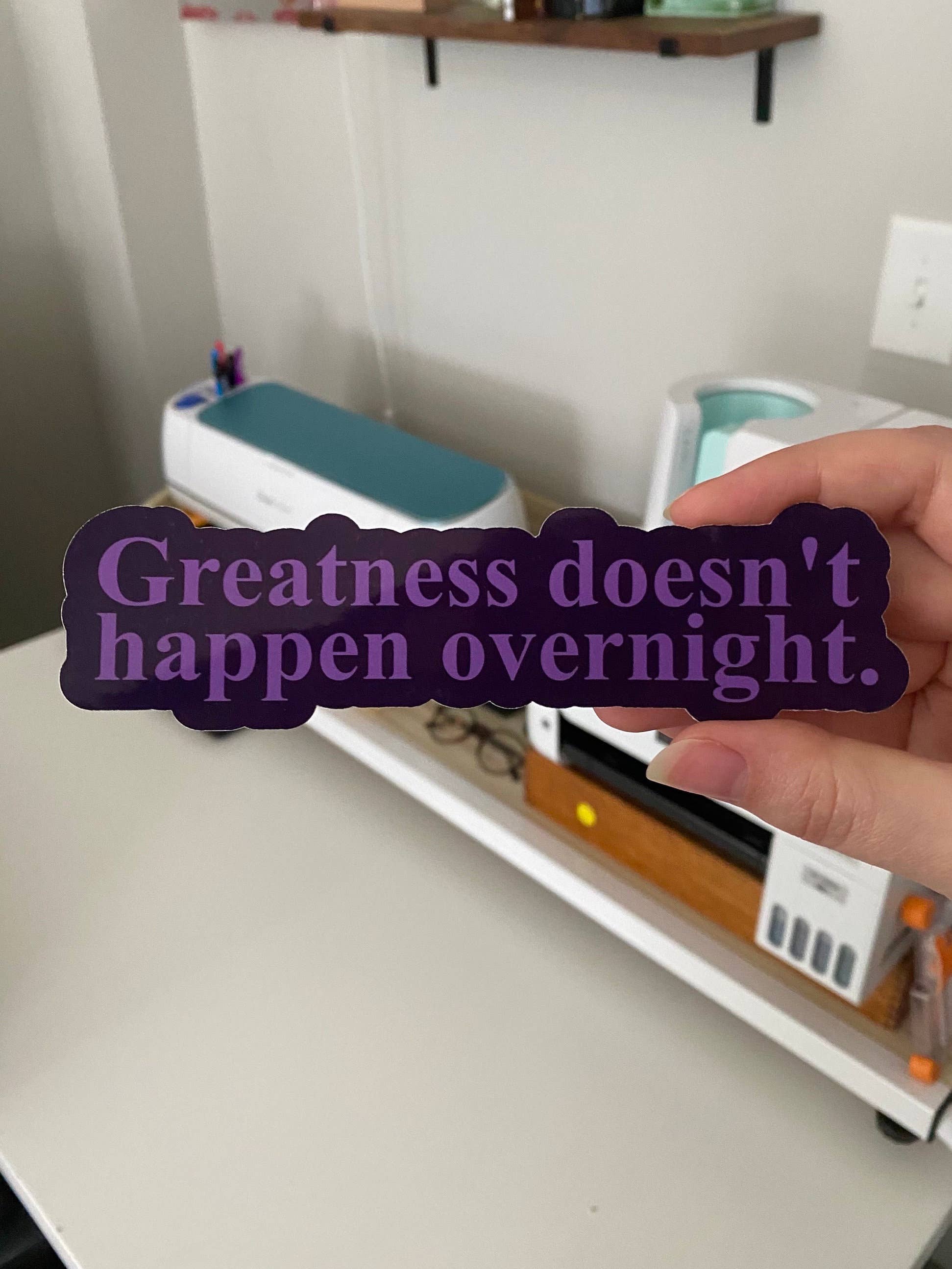 Een grappige quote-sticker, perfect als cadeau voor de kunstenaar die je kent. Geloof me, ze zullen er dol op zijn! En als je zelf een kunstenaar bent, des te beter. Afmeting: 10,6 cm x 3,6 cm Materiaal: Glanzend vinyl, archiefinkt, lamineervel