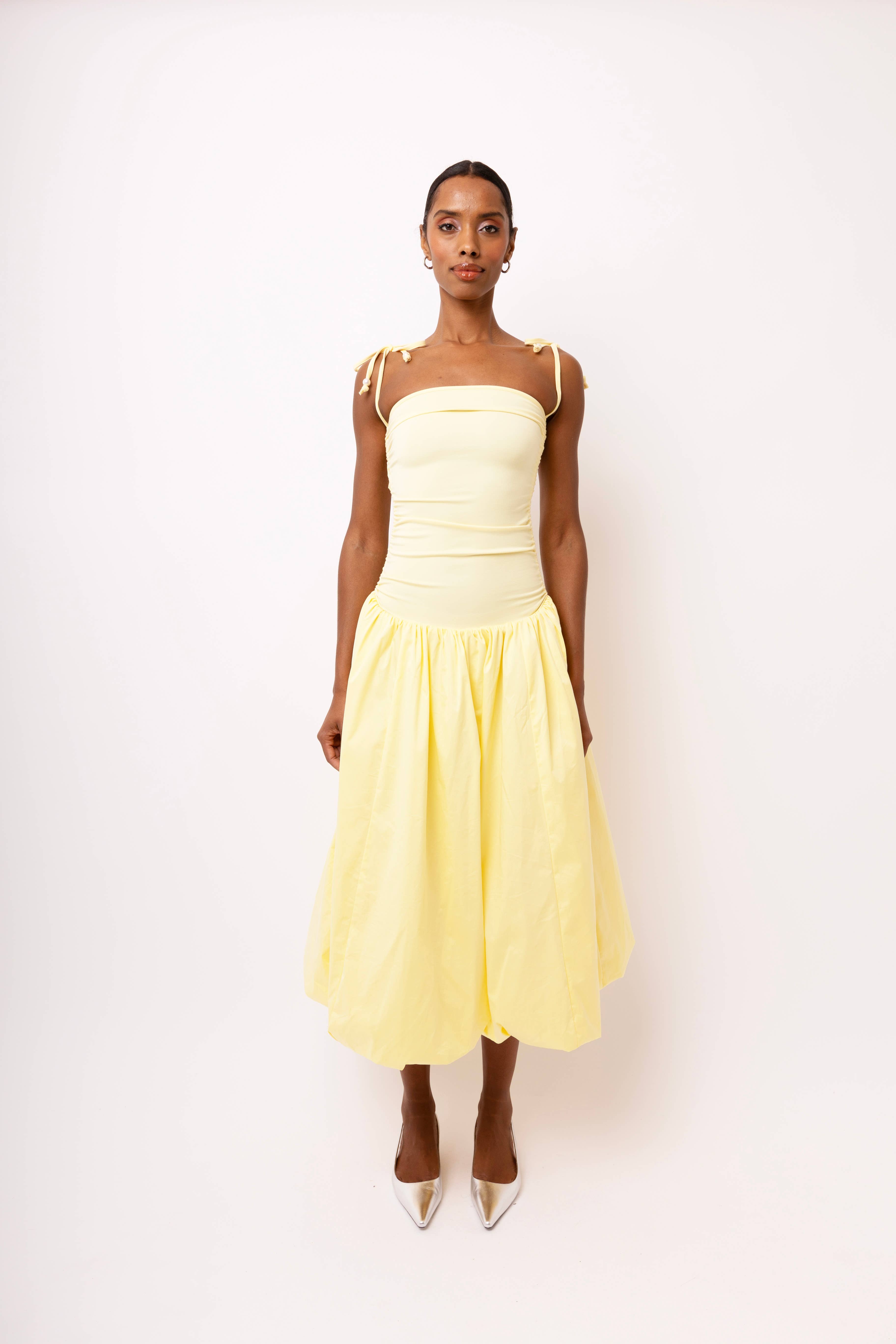 Onze bestverkochte strapless midi-jurk in een rijke chocoladebruine polkadotprint! Deze jurk heeft een stretch lijfje met strikbandjes en een flatterende verlaagde taille. Trekkoorden aan beide zijden van het lijfje creëren een geplooid effect met verstelbare trekkoorden voor een losse of strakke pasvorm. De klassieke pofrok is volledig gevoerd en heeft zakken! Perfect voor elke gelegenheid en elk seizoen, dit is een garderobe-essential!