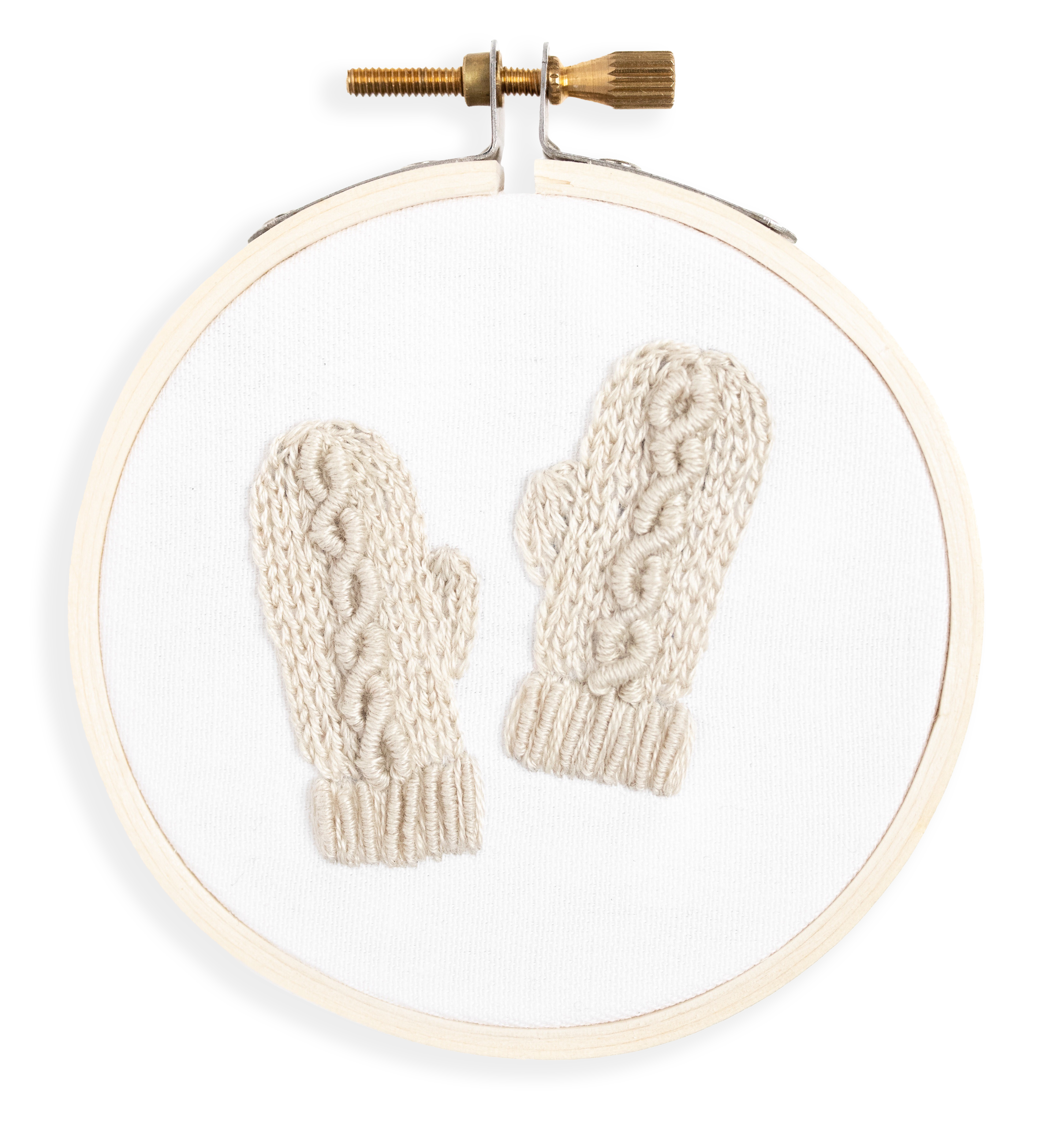 De Cable Knit Sock Embroidery Kit is een liefdesbrief voor het warme, donzige sokkenseizoen. Beginners gebruiken basissteken om eenvoudige, gebreide sokken te maken, en veteranen (of ambitieuze beginners) kunnen een paar stappen verder gaan om iconische kabelbreidetails toe te voegen. Deze set wordt geleverd in een doos van recyclebaar materiaal om eenvoudig en milieuvriendelijk cadeau te doen. Deze aanbieding is voor een compleet doe-het-zelf borduurpakket; je ontvangt al het materiaal dat nodig is om je eigen Cable Knit Socks-ornament van begin tot eind te naaien. De kit bevat: - 7,5 cm (3") borduurring - Twill van 100% katoen, voorbedrukt met het patroonontwerp - Borduurnaald (John James, maat 5) - Volledige DMC-borduurgaren (1 kleur) - Gedetailleerd, geïllustreerd instructieboekje - Vilten hoepel aan de achterkant - lint van 100% katoen om ornamenten op te hangen