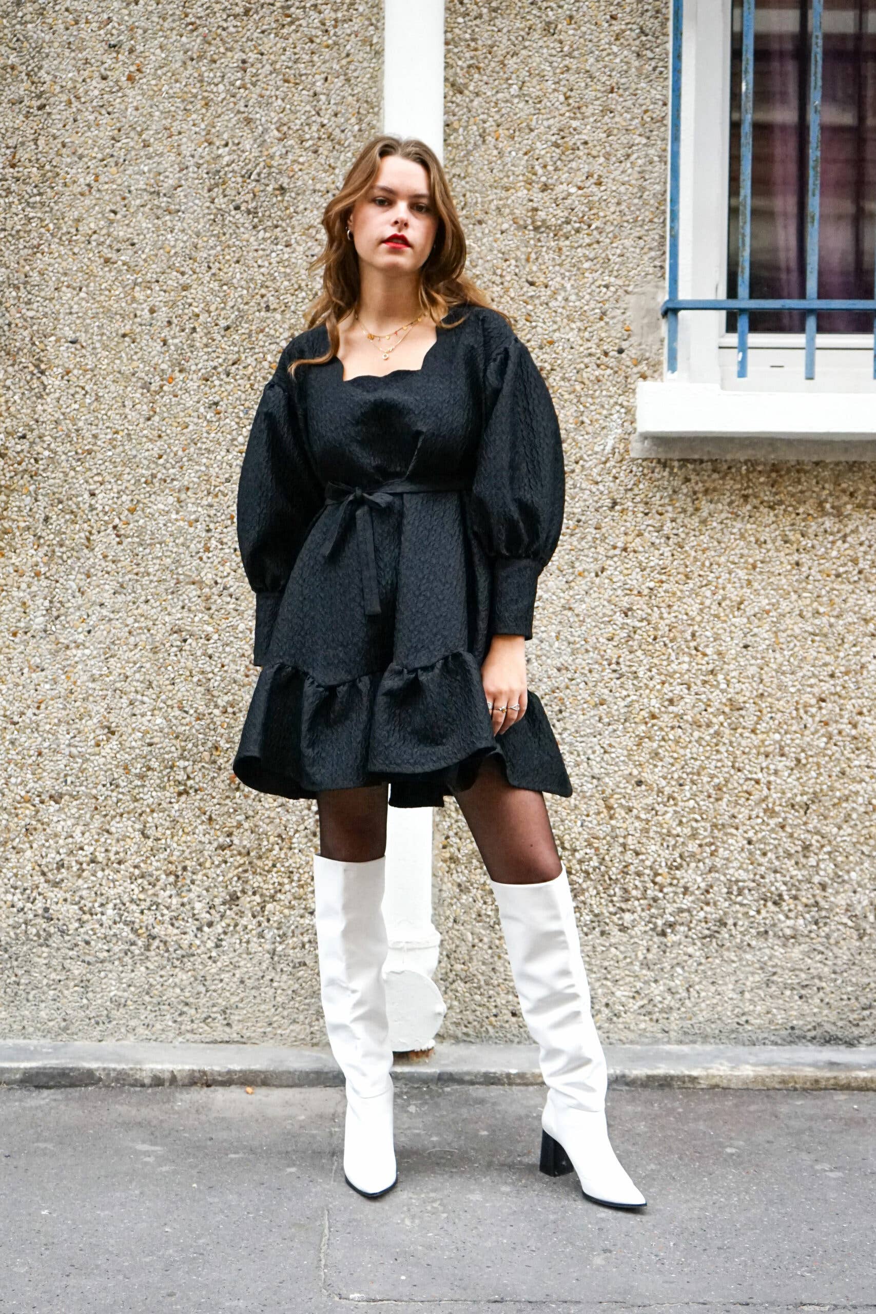 BESCHRIJVING VAN DE PAS Colette is een oversized Peter Pan-halsband met coquilles. Dit model is gemaakt van getextureerd denim. Het samenspel van materialen tussen ruwe denim en gerafeld katoen zorgt voor een kleurrijk gestreept patroon met kleine rode stiksels. HOE DRAAG JE HET De Colette Fancy Denim-kraag, gedragen over een lichte Nina-spijkerjurk, doet wonderen. We gebruiken hem voor alle gelegenheden, voor heel casual looks met een witte top of iets verfijnder in mix en match op een andere print. INSPIRATIE De Colette Fancy Denim-kraag is geïnspireerd op mijn onvoorwaardelijke liefde voor denim. Alle halsbanden van Rosamen Bado zijn ontworpen als kledingversiering, triomfantelijke kronen die volledig opnieuw zijn uitgevonden om om je nek te dragen. Het is het kleine extraatje dat een look in een handomdraai verbetert EEN LOKALE PRODUCTIE Alle stukken van Rosamen Bado zijn gemaakt in Parijs. Uniek formaat