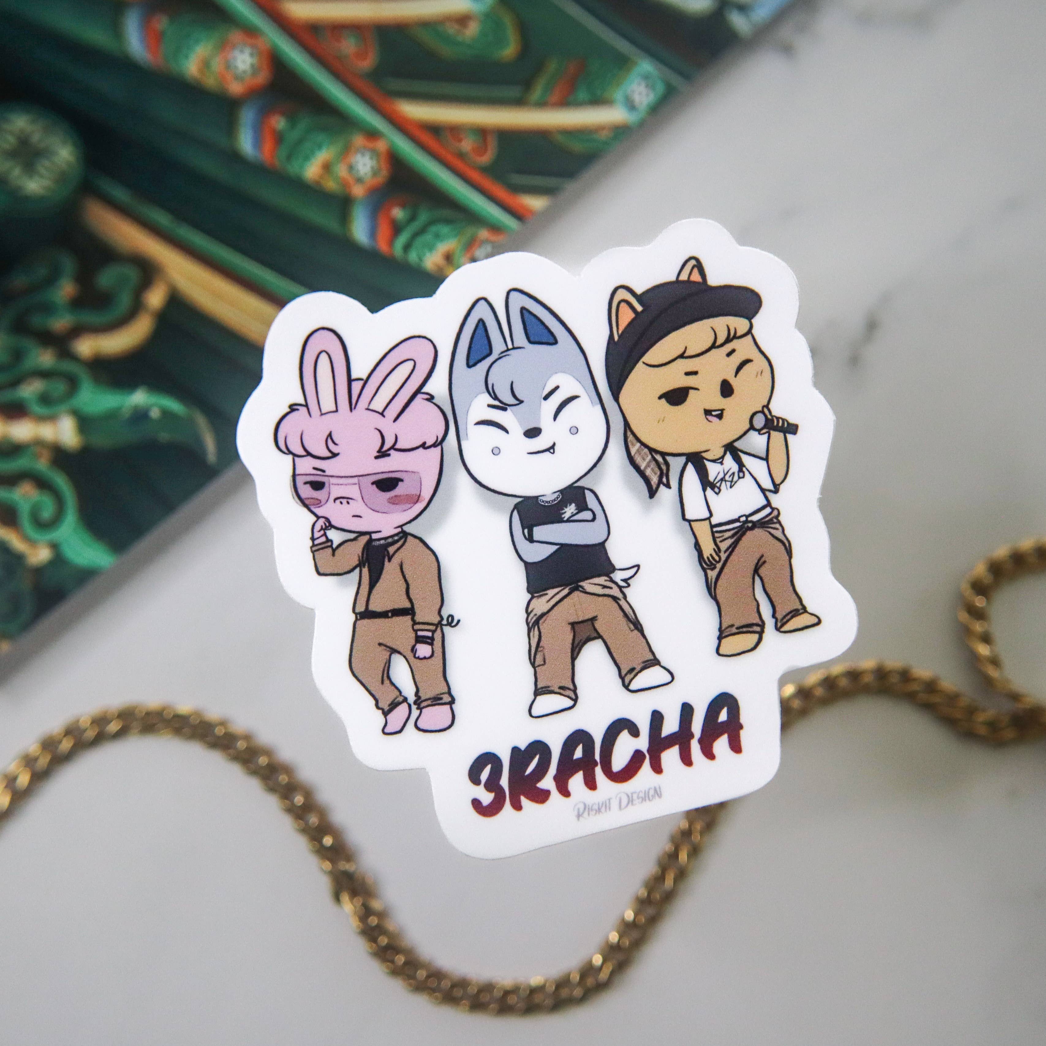 Gebaseerd op de muziekvideo 143, zijn hier alle 8 leden in hun respectievelijke outfits! De witte rand/achtergrond is eigenlijk transparant als je hem eenmaal hebt gepeld. Het pakket bevat 1 van elk lid. De stickers zijn gemaakt van weerbestendig vinyl. Bangchan/Wolfchan: 1,4 x 3" Leeknow/Leebit: 1,3 x 3" Changbin/Dwaekki: 1,2 x 3" Hyunin/Jiniret: 1,4 x 2,9” Han/Quokka: 1,2 x 2,9” Felix/Bbokari: 1,3 x 2,9” Seungmin/puppyspel: 1,4 x 2,9 ” I.N./Foxiny: 1,4 x 2,9”
