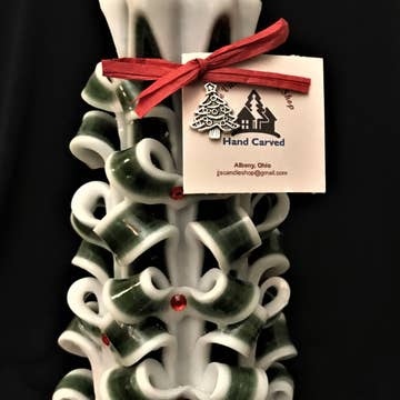 Vier het seizoen met deze prachtige handgesneden kaars. Versierd met een grote sneeuwvlok aan de voorkant en een beetje bling. Ongeveer 9 inch lang en 5 inch breed is deze kaars verkrijgbaar met een lont of een olielampinzetstuk. Ik raad Infinity kaarsolie aan voor de lamp, maar elke rookloze lampolie werkt. Als blauw en wit niet bij je decor passen, stuur me dan een bericht met de kleuren die je wilt. Wit is altijd een kleur en je kunt kiezen uit maximaal 3 kleuren.