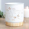 Deze matte keramische oliebrander heeft een mooi libellendetail en een keramische basis met een houtafwerking die hem een eigentijdse uitstraling geeft. Dit item kan ook worden gebruikt als smeltbrander, maar het is aan te raden om bij het toevoegen van was rekening te houden met de grootte en diepte van de kom om ervoor te zorgen dat deze bij het smelten niet over de randen loopt.