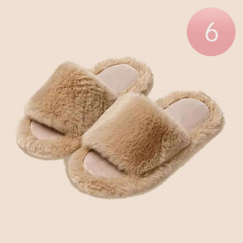 6 paar - Met strass versierde pluizige pluche huisslippers voor binnen