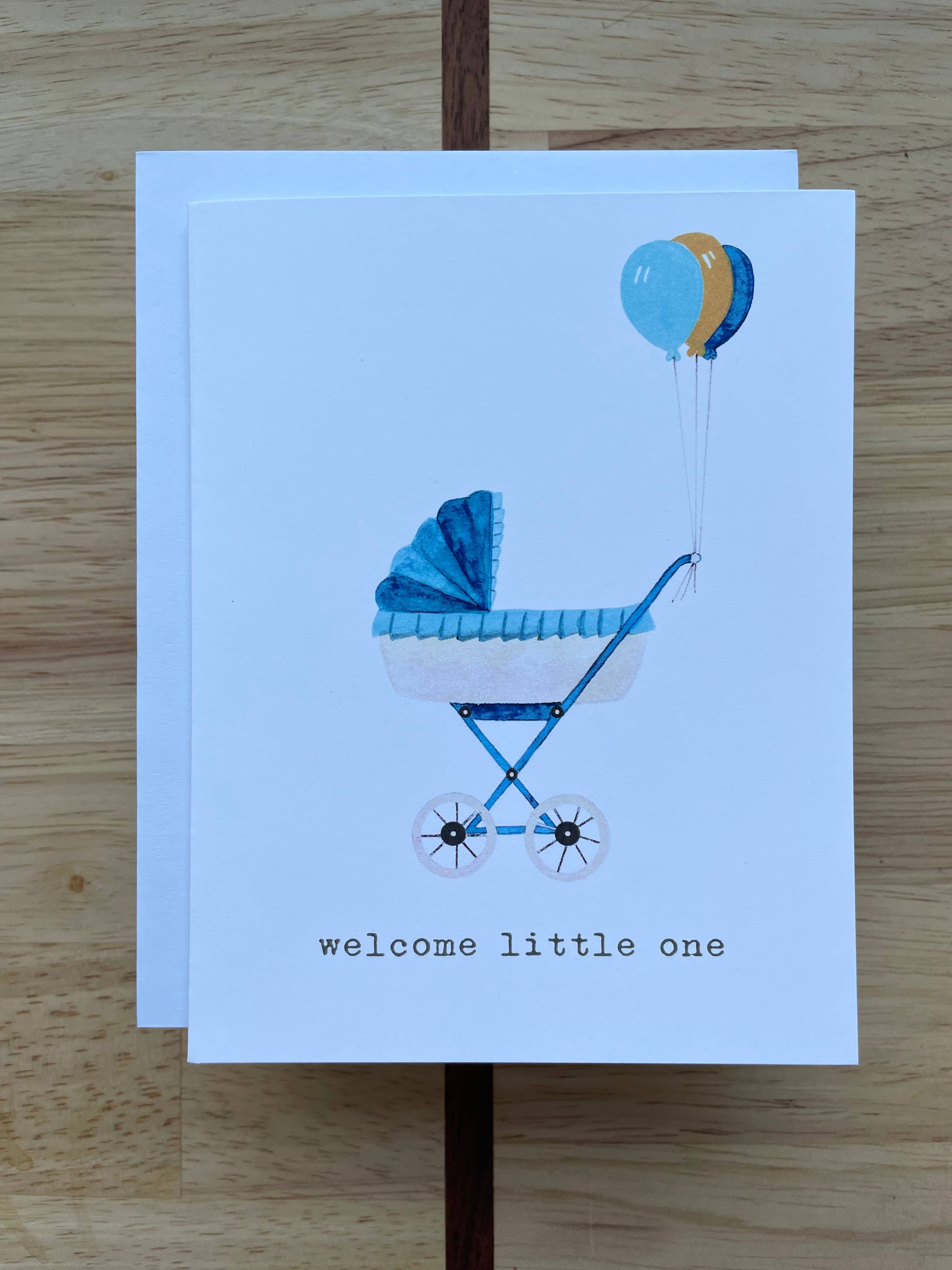 Welcome Little One - Tan Pram - Wenskaart met waterverf