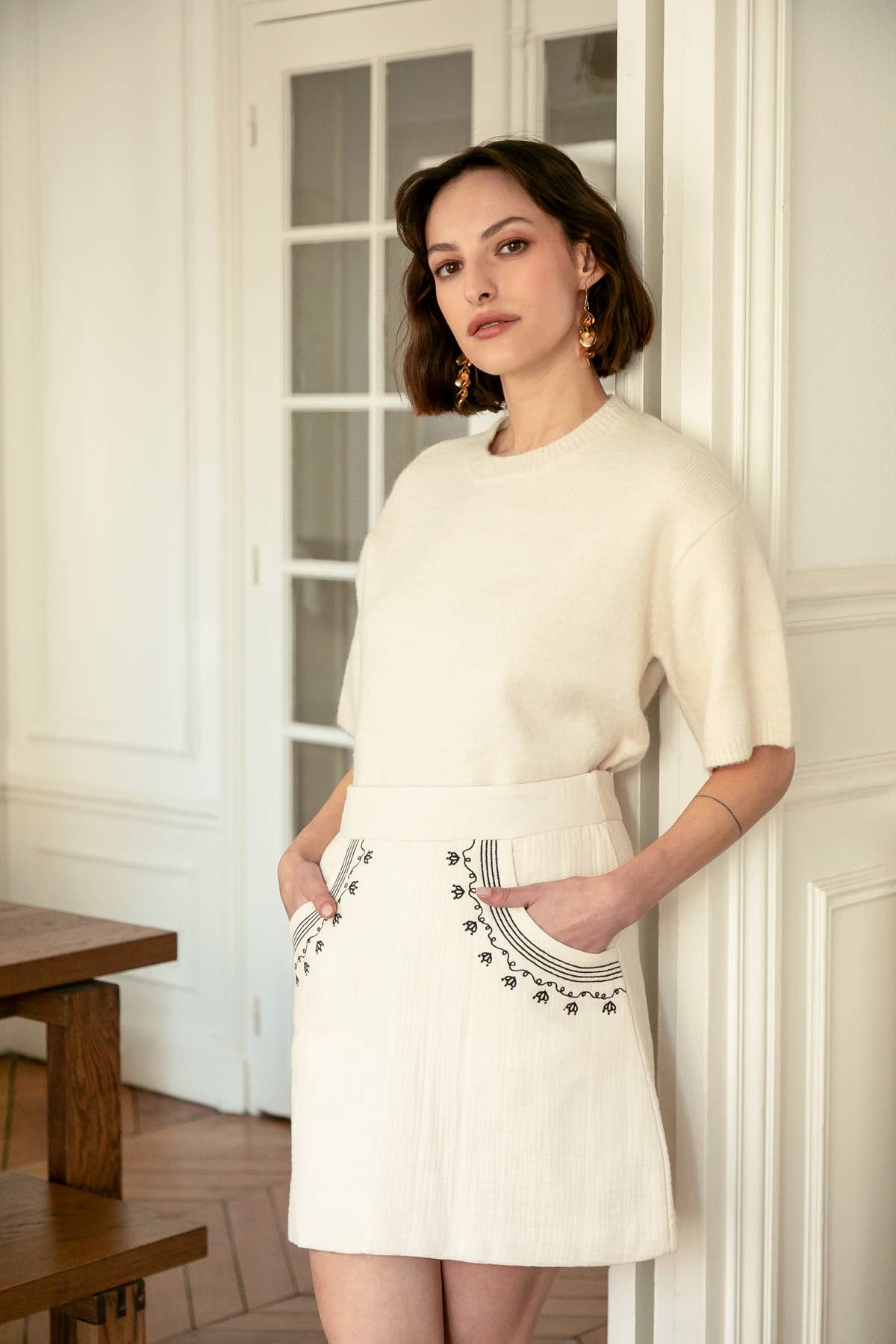 Prachtige constructie van de broeken, uitstekende soort breiwerk.