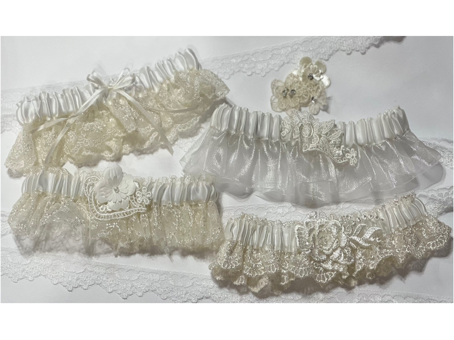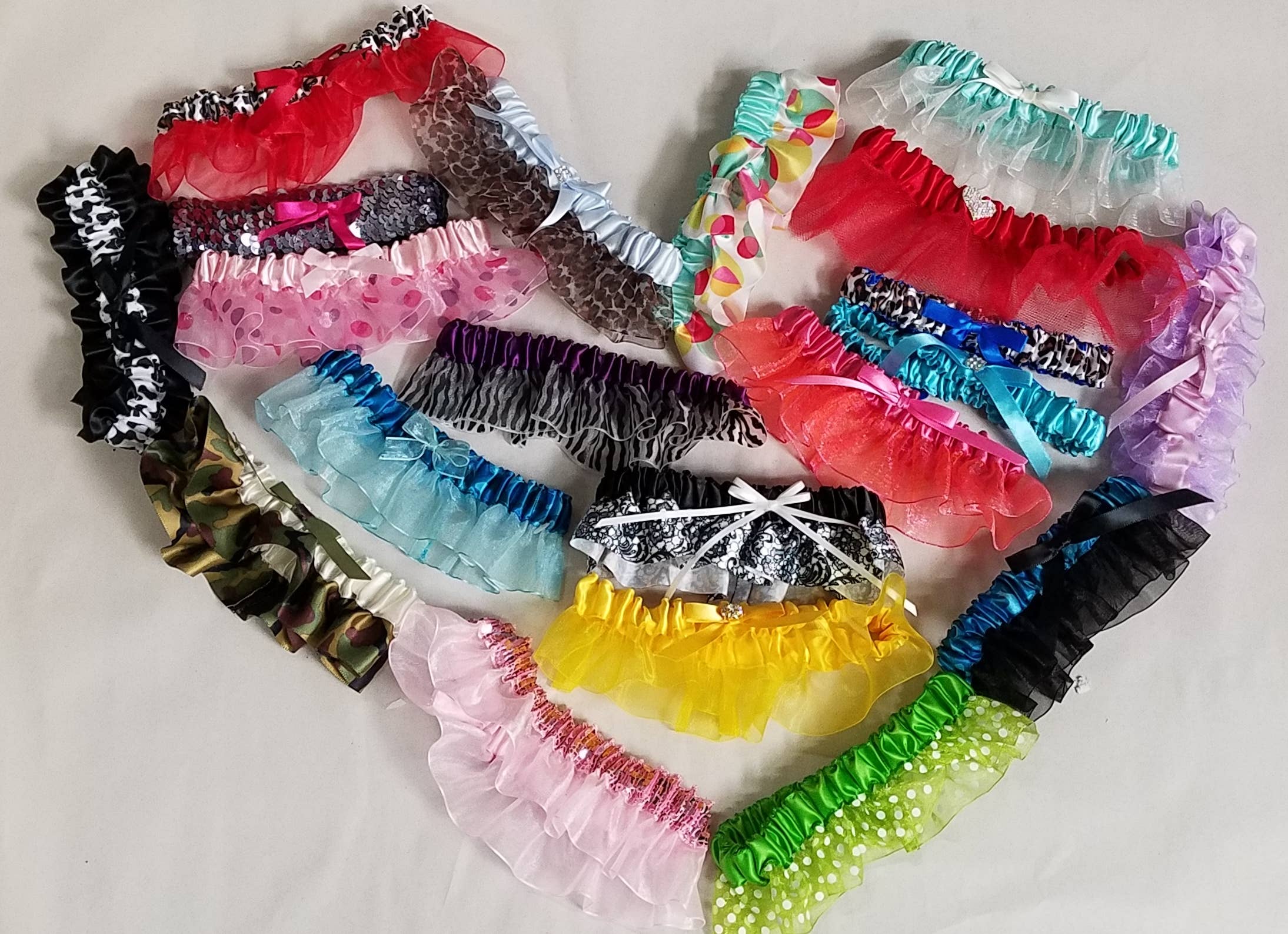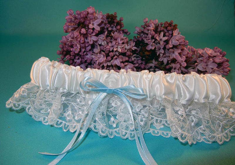 Een vleugje van een blauwe set van 6 jarretels. Stijlen kunnen variëren. Individueel verpakt. Gemaakt in de VS.