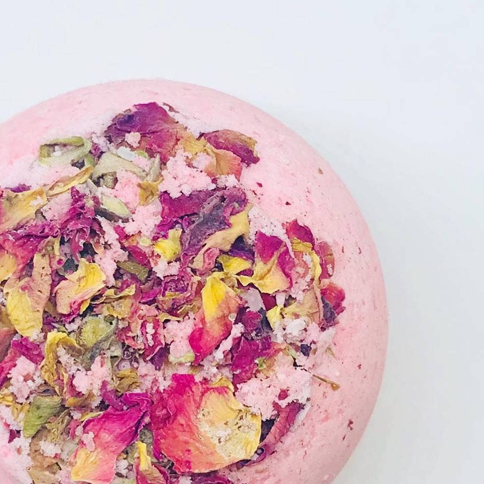 Geur: lila, zoete roos, lelietje-van-dalen Onze producten worden gemaakt met hoogwaardige, ethisch geproduceerde ingrediënten, allemaal met de hand. Onze badbommen zijn geformuleerd voor de gevoelige huid en worden alleen gemaakt met natuurlijke, zachte ingrediënten - geen agressieve chemicaliën of schurende schuimmiddelen. Je huid zal je bedanken! Elke badbom is individueel krimpfolie verpakt in een biologisch afbreekbare film met een cirkellabel. Deze badbommen wegen tussen de 7-8 gram. Gooi de hele bom in een volledig getrokken kuip, of split in tweeën om te genieten in twee baden. Ik raad echter persoonlijk aan om er één per bad te gebruiken. Ingrediënten: zuiveringszout, citroenzuur, epsomzouten, maizena, zonnebloemolie, water, geur, poederkleurstof, RA Hoe te genieten: Vul gewoon een bad met warm/heet water, pak de badbom uit de verpakking, laat de badbom in bad vallen, hij ziet hem bruisen! De badbom zal tot 5-6 minuten bruisen terwijl hij de oliën en het aroma in het bad afgeeft.
